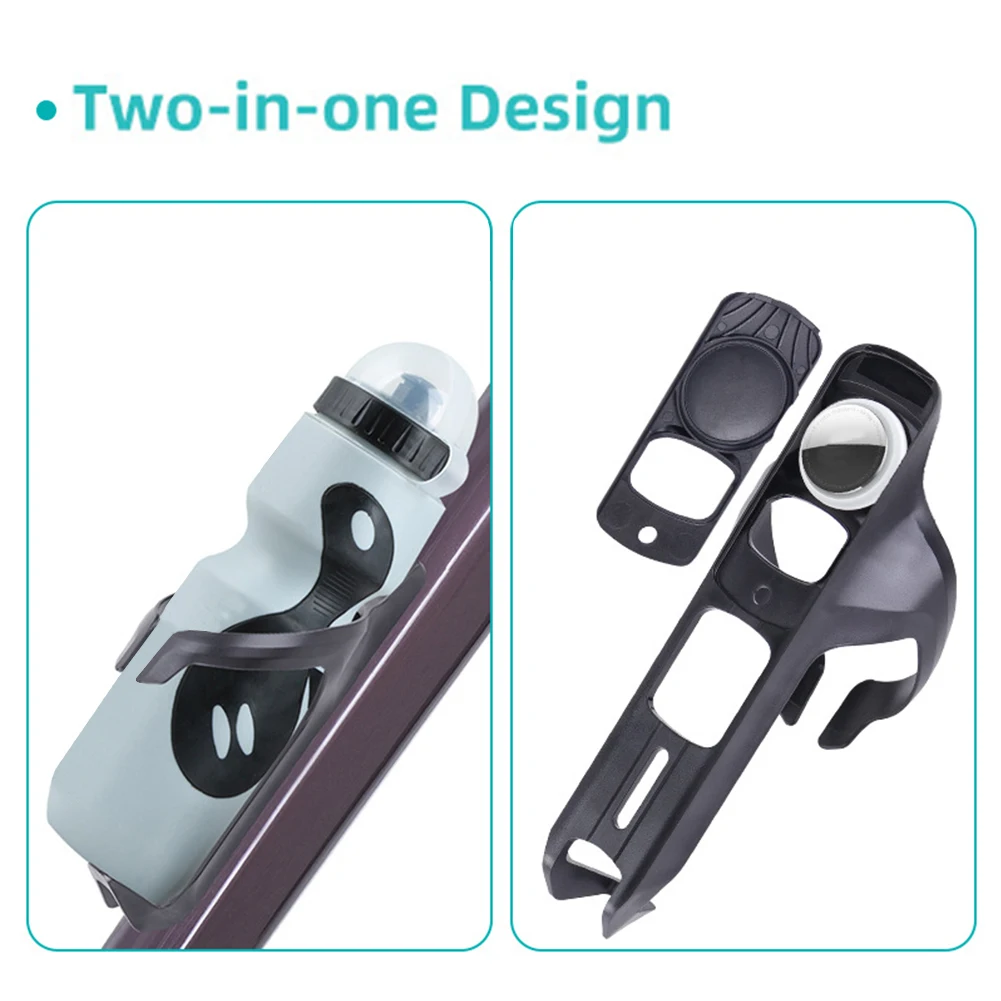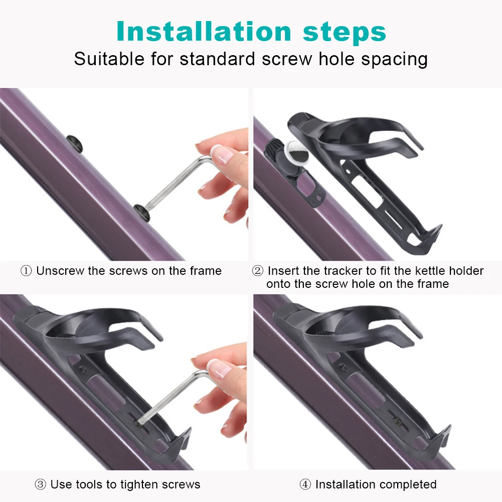 Bicycle Water Bottle Cage Anti-Theft Bike Water Bottle Bracket Scratch-Proof Anti-Lost Protective Bottle Holder Compatible with Apple AirTag Features: 1. Anti-Theft Locator Slot: Designed with a slot for a locator (locator not included), this bike bottle GPS tracker cage helps prevent bike theft by accommodating tracking devices. 2. Aerodynamic Design: Featuring a streamlined shape, this bike water cup holder reduces wind resistance, enhancing your cycling speed and efficiency. 3. Adjustable Fit: Equipped with oval mounting holes, this bicycle water bottle cage allows for vertical adjustment to fit a variety of bikes with different water bottle cage mounting distances. 4. Smooth Edge Protection: The rounded edges of this bike water bottle bracket prevent scratches and protect your water bottle during use, ensuring durability and safety. 5. Easy Installation: This anti-lost protective bottle holder is quick and easy to install, requiring no complex tools or special knowledge, making it accessible for all cyclists.