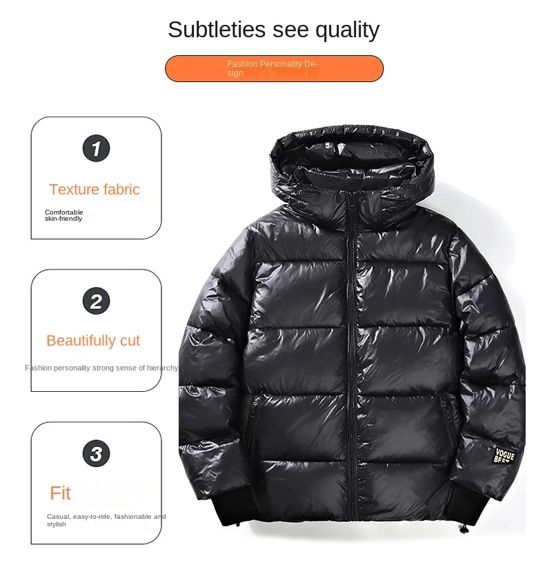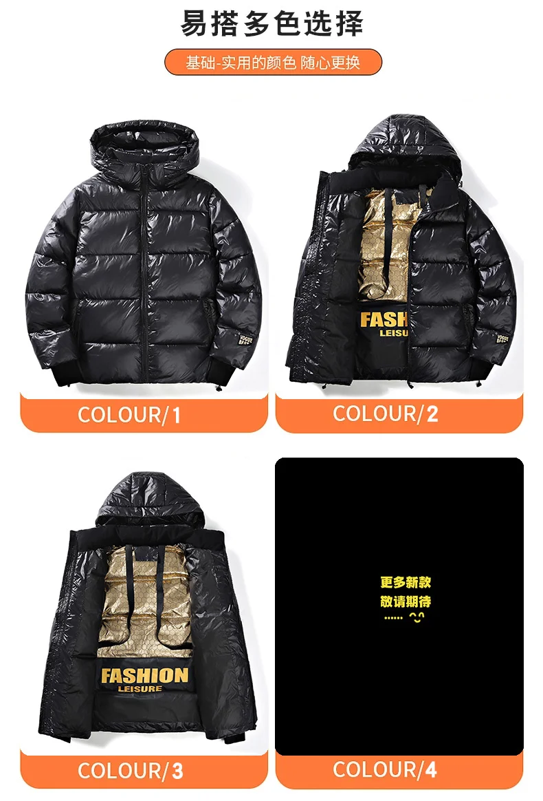 2024 Winter Warm Jacket Men's Trendy Brand Black Gold Bright