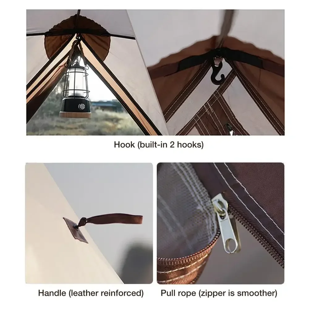 2.Practical and Functional: Enjoy hassle-free camping with our outdoor tent's triangular design and auto-open feature for quick pitch. The spacious and stable design creates a no-dead-corner haven, making your outdoor experience a breeze.