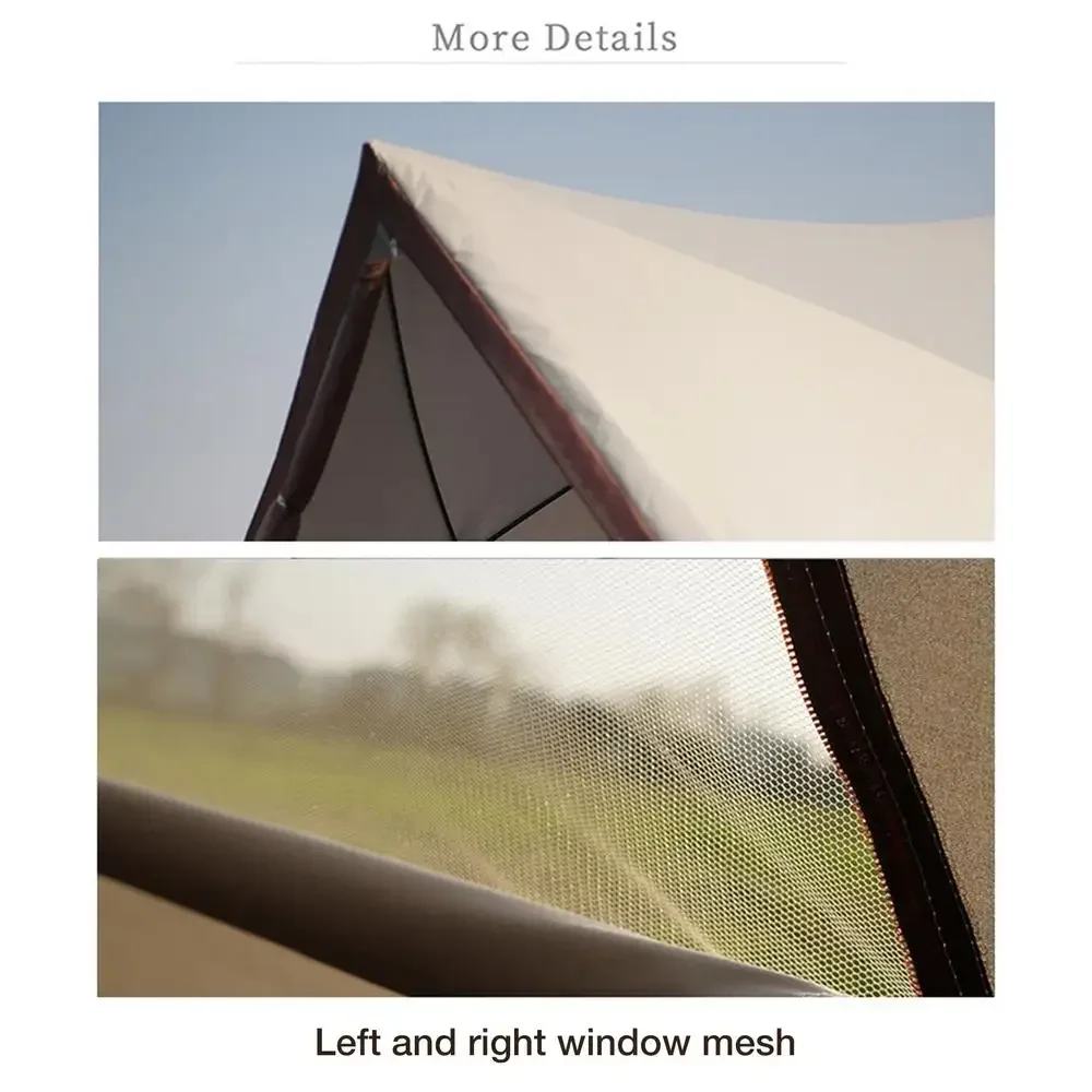 3.Enhaned Ventilation: Our beach camping tent is designed with ventilated front and rear doors, as well as ventilation on all sides, ensuring easy airflow and a refreshing breeze. Enjoy the outdoors in perfect comfort.
