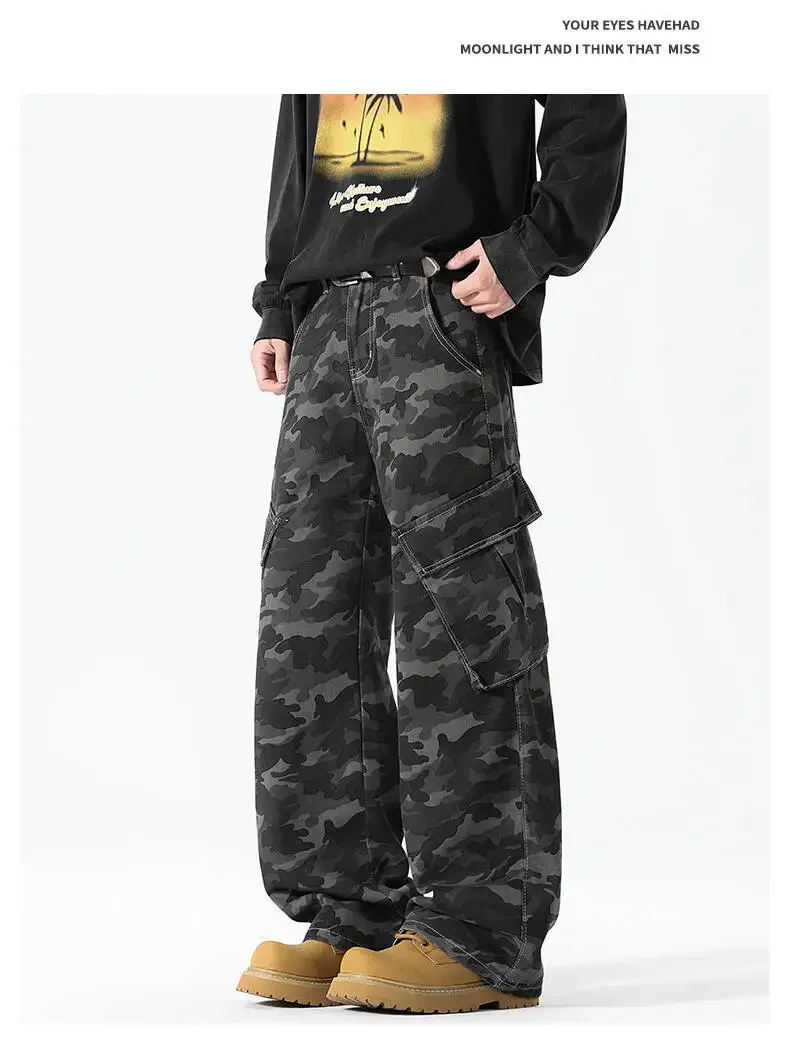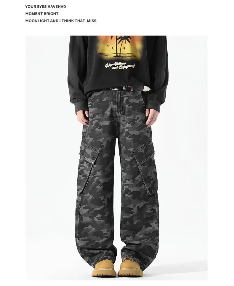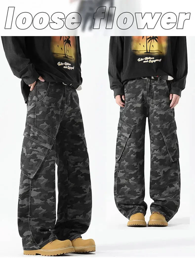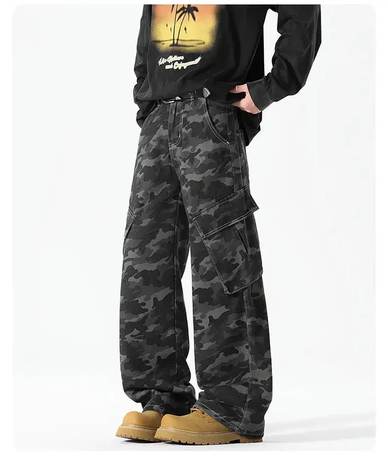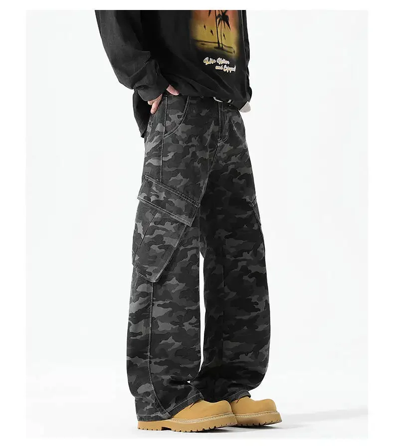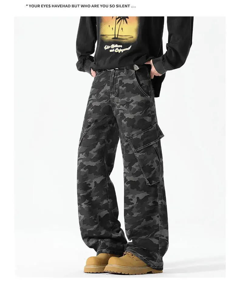 2025 New Men's American Workwear Camouflage Jeans Men Casual
