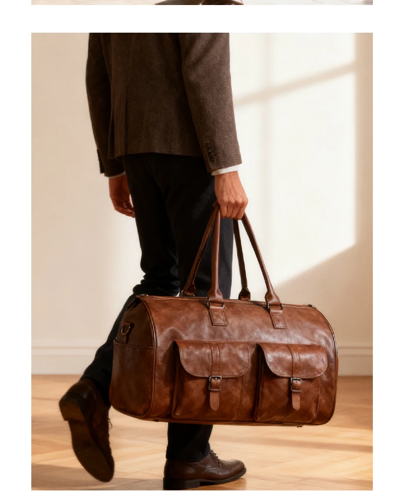 2025 New Men's Leather Waterproof Business Travel Large