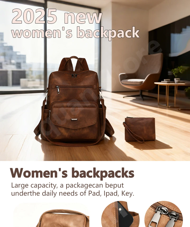 2025 new women's pu leather waterproof anti-theft large