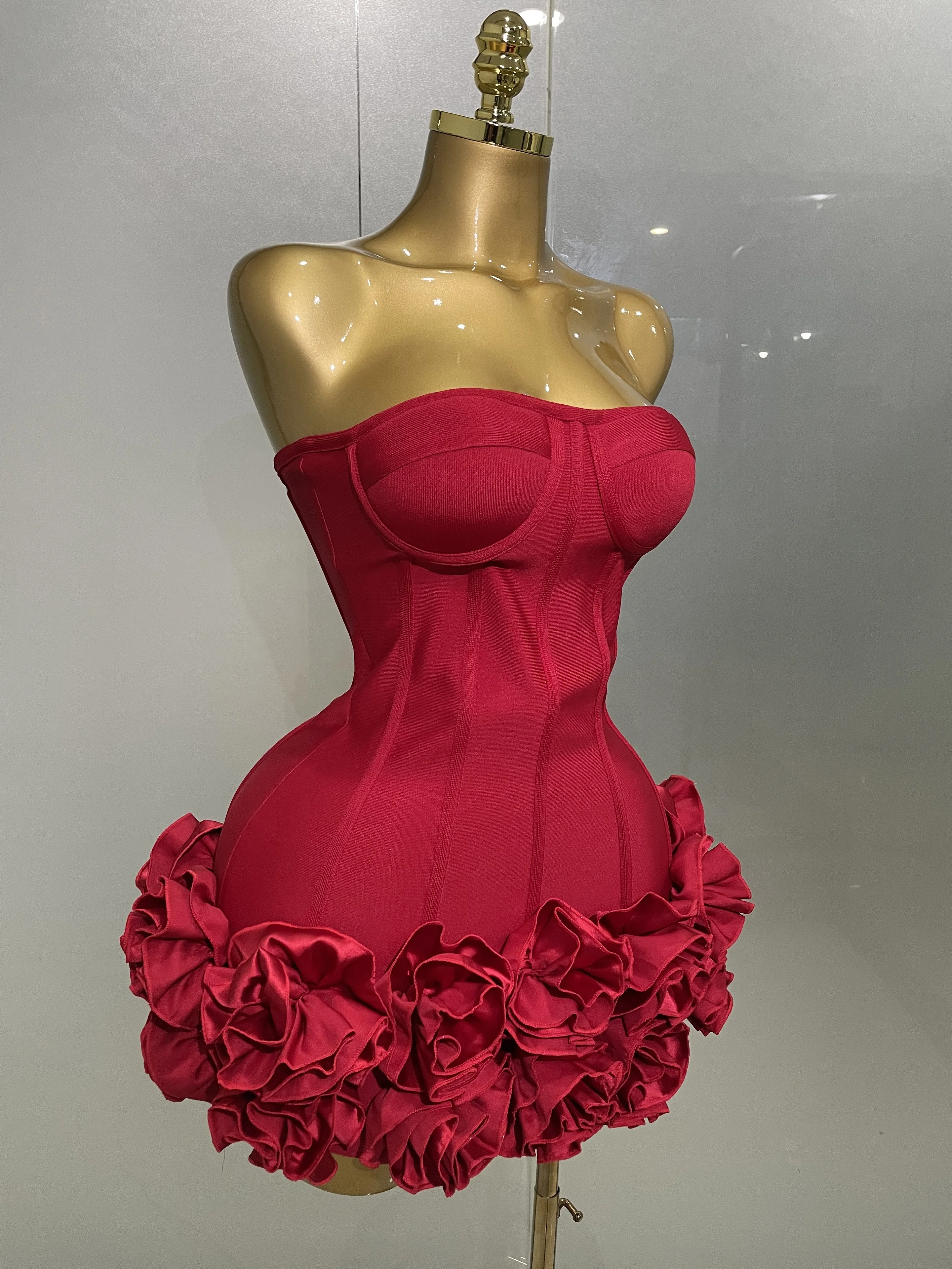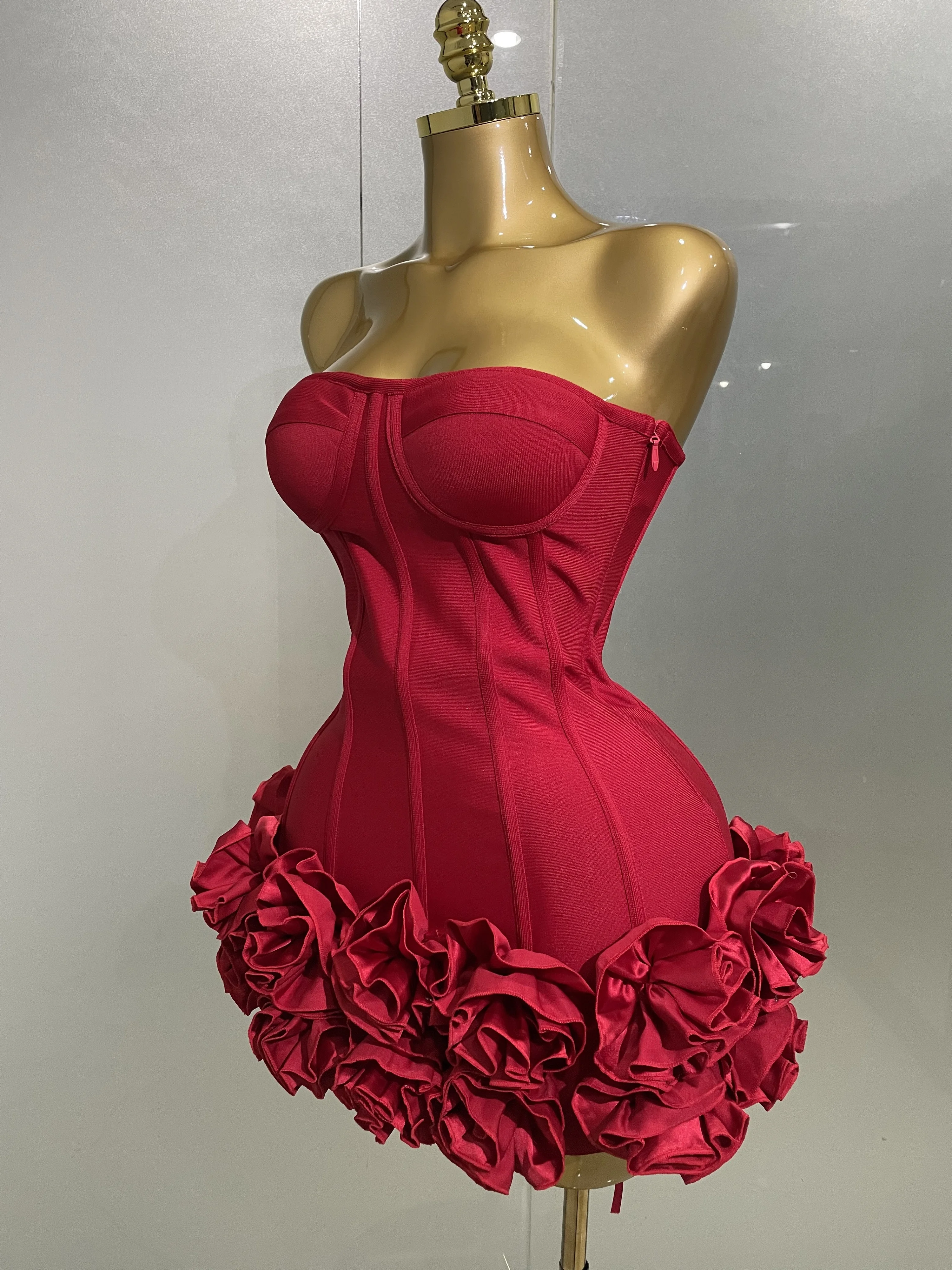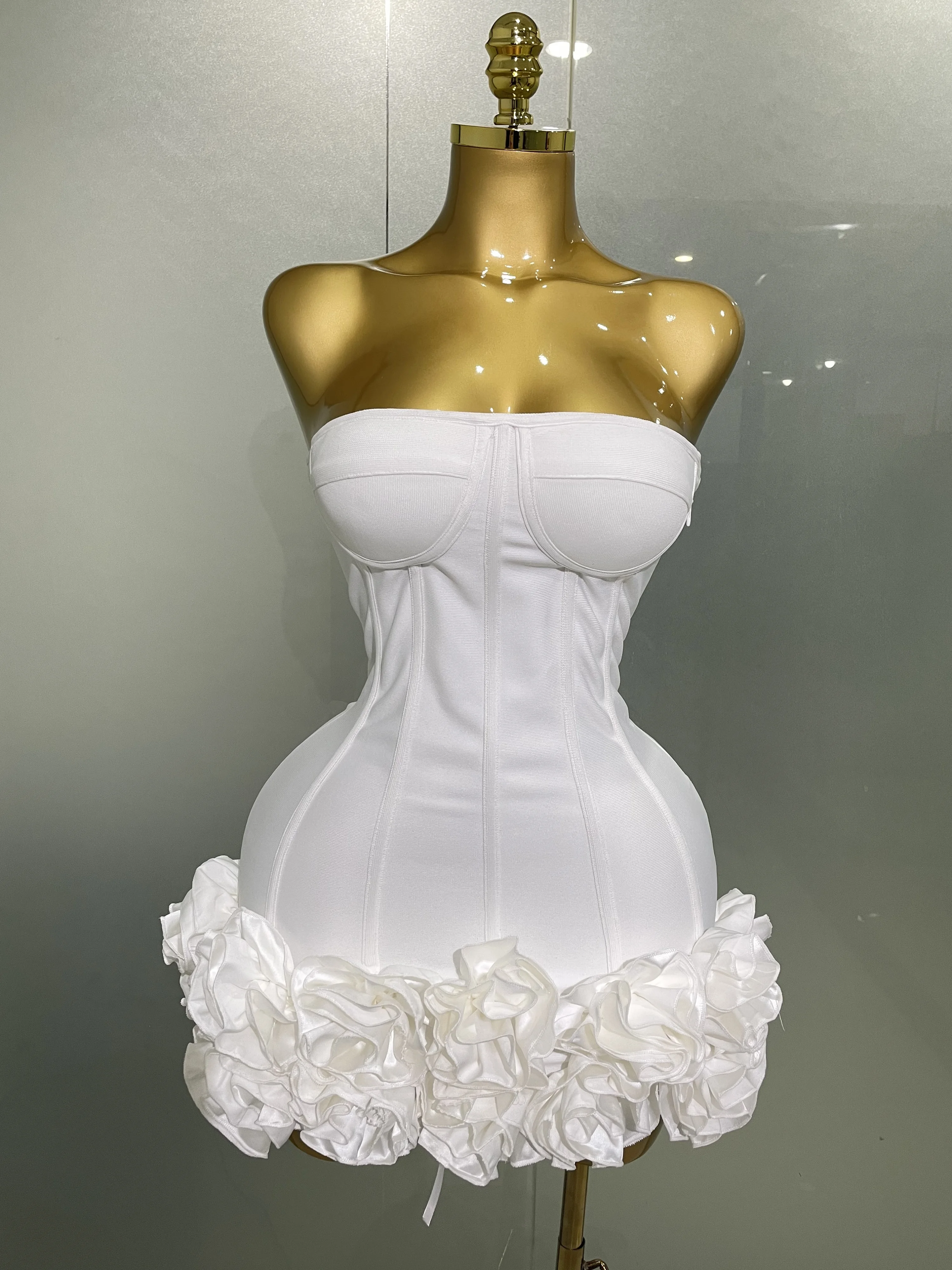 2025 Sexy Evening Bandage Dress Strapless Bodycon Flowers