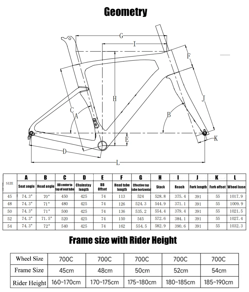 Frame Height: 45cm / 48cm / 50cm / 52cm / 54cm