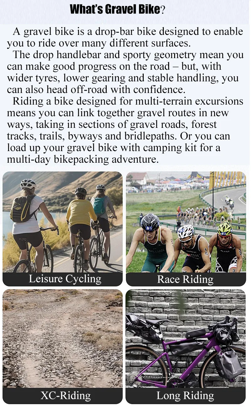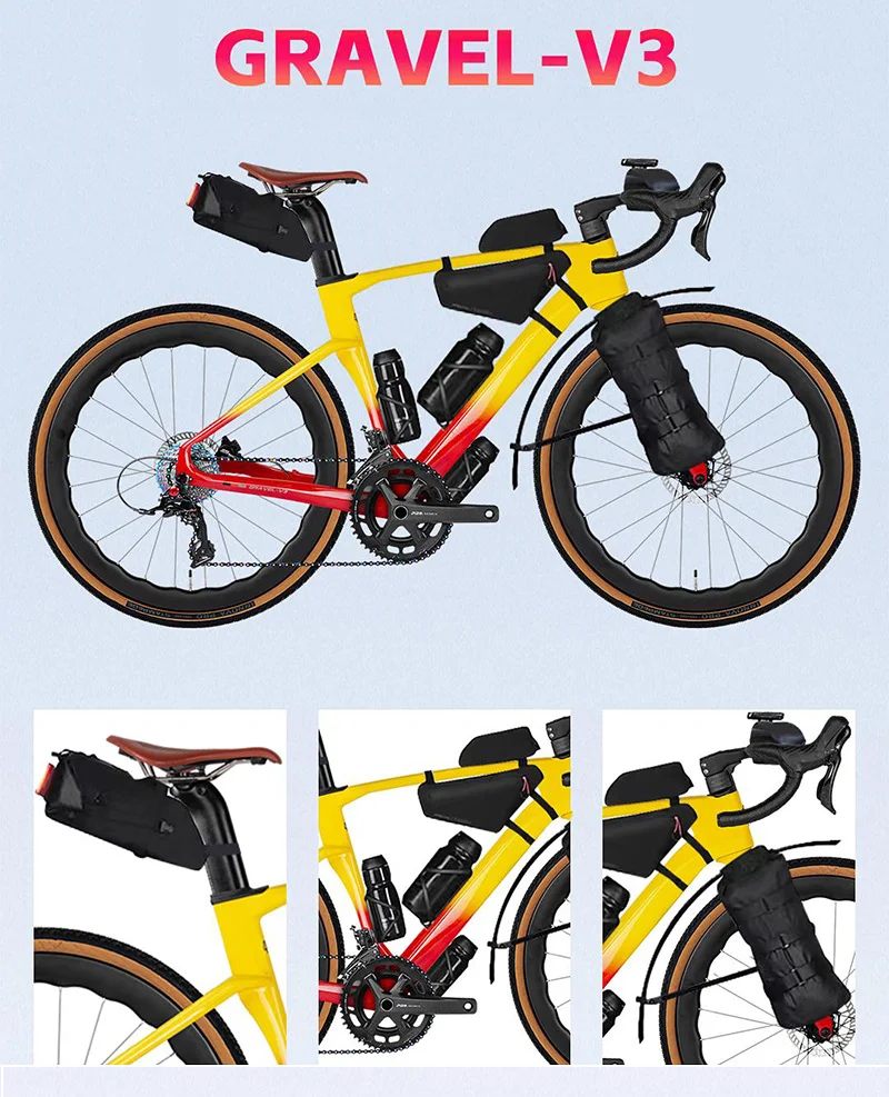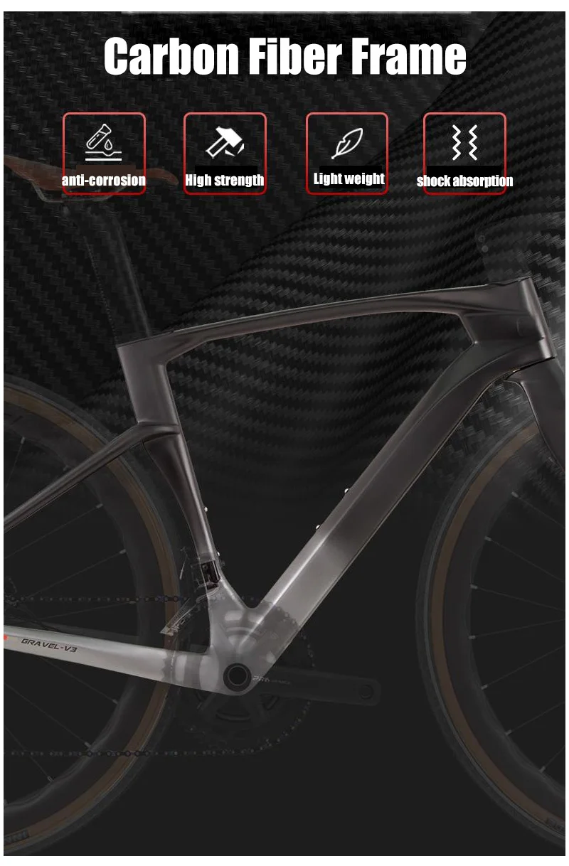 Frame: GRAVEL-V3(Disc&thru-axle 12×142), high modulus Carbon fiber,Aero-Racing,Inner-Cables