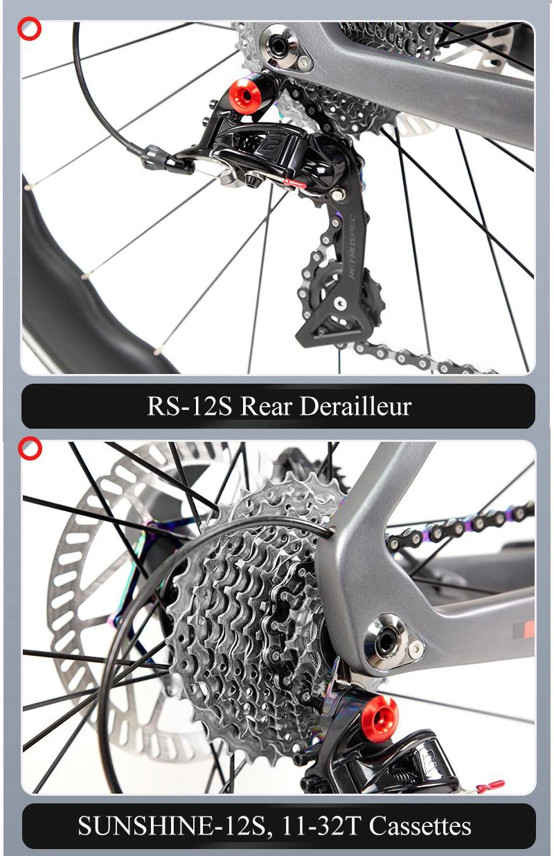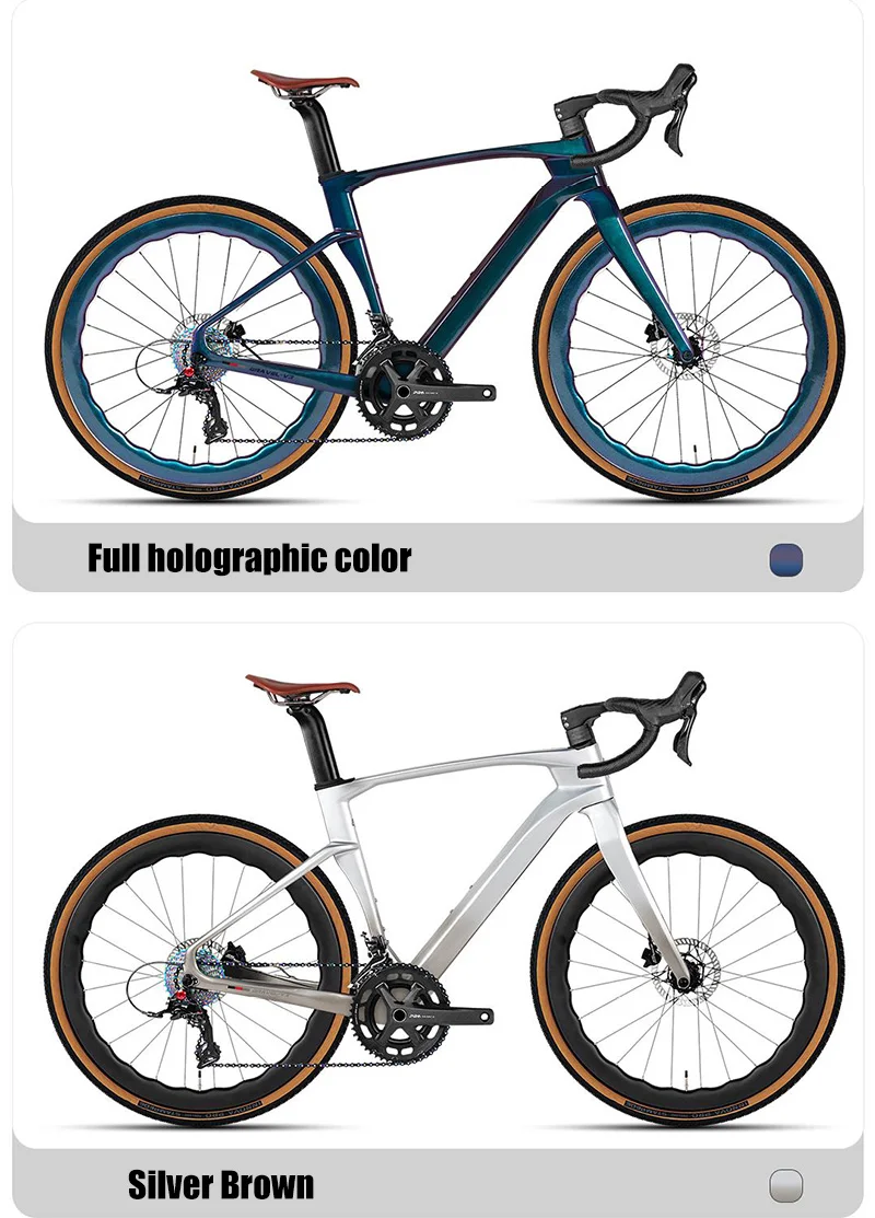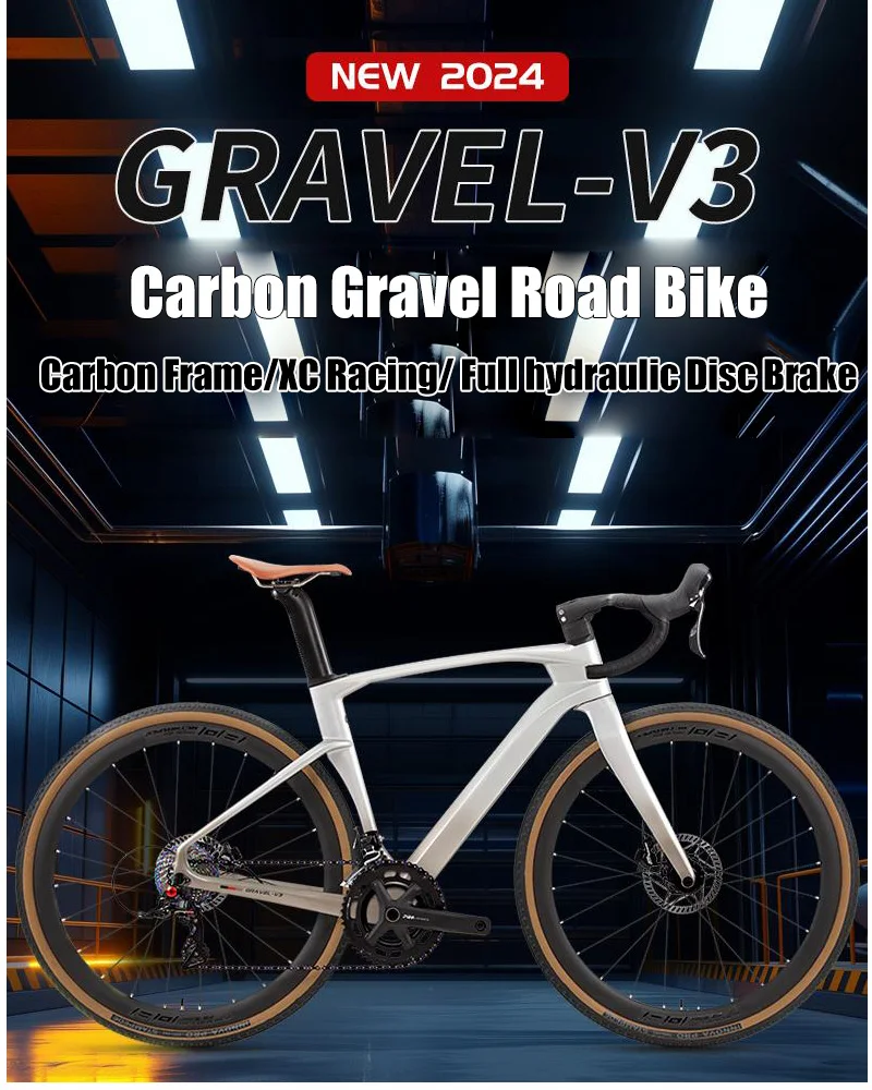 Specification:2025 new coming Carbon Gravel Bike / 700x40C Tire Off-road carbon gravel bicycle/ hydraulic brake road gravel bike SENSAH 2*12S /50mm carbon wheelset gravel bikes / men's cheap carbon gravel bicycle with inner cables routing