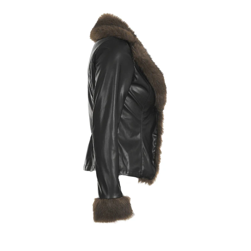 2025 Winter Women American Retro Pu Faux Leather Jacket Y2k