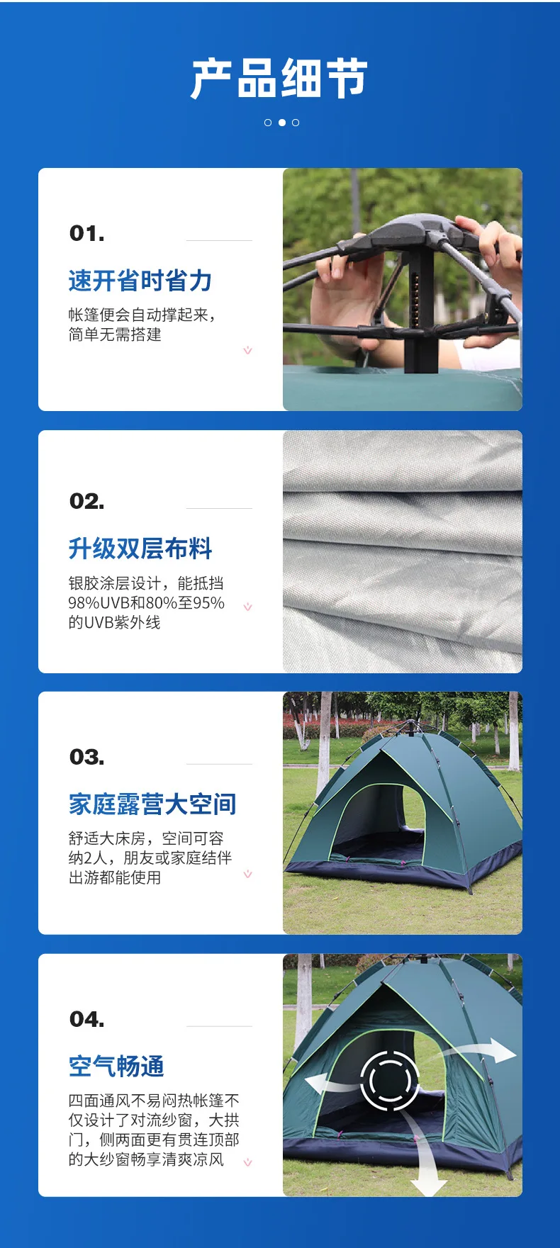 3-4 Person Automatic Double-Layer Camping Tent Outdoor Quick