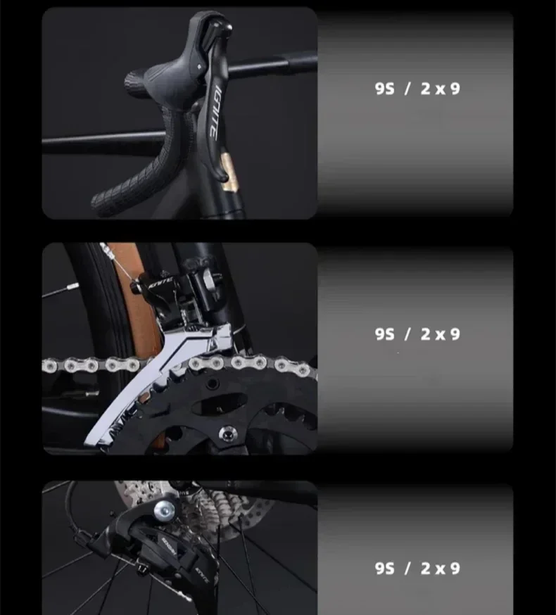 32mm Aluminum Alloy Frameset Gravel Bike 18 Speed Road Bike