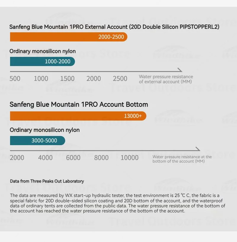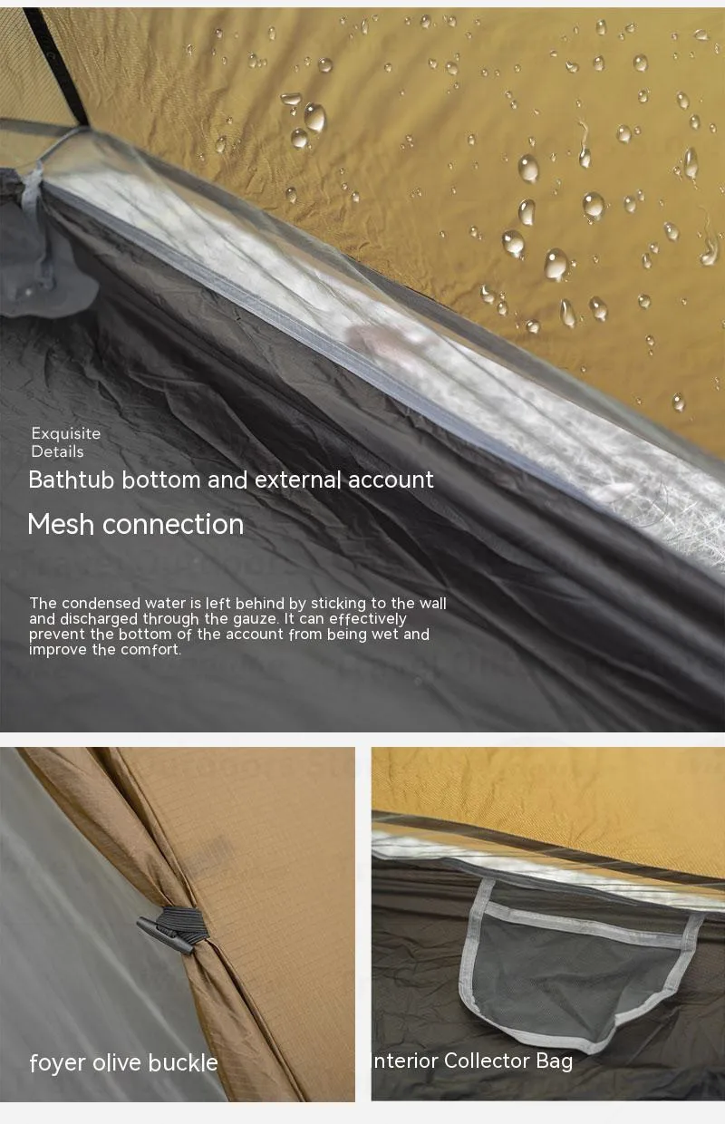 Bottom of Tent: 20D Light Silicone Waterproof Nylon (Waterproof Index 5000mm)
