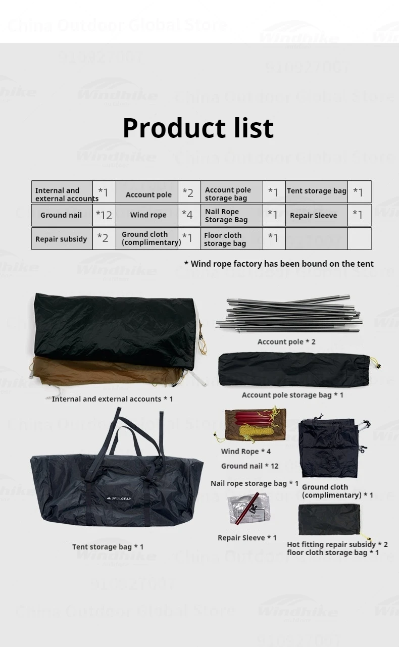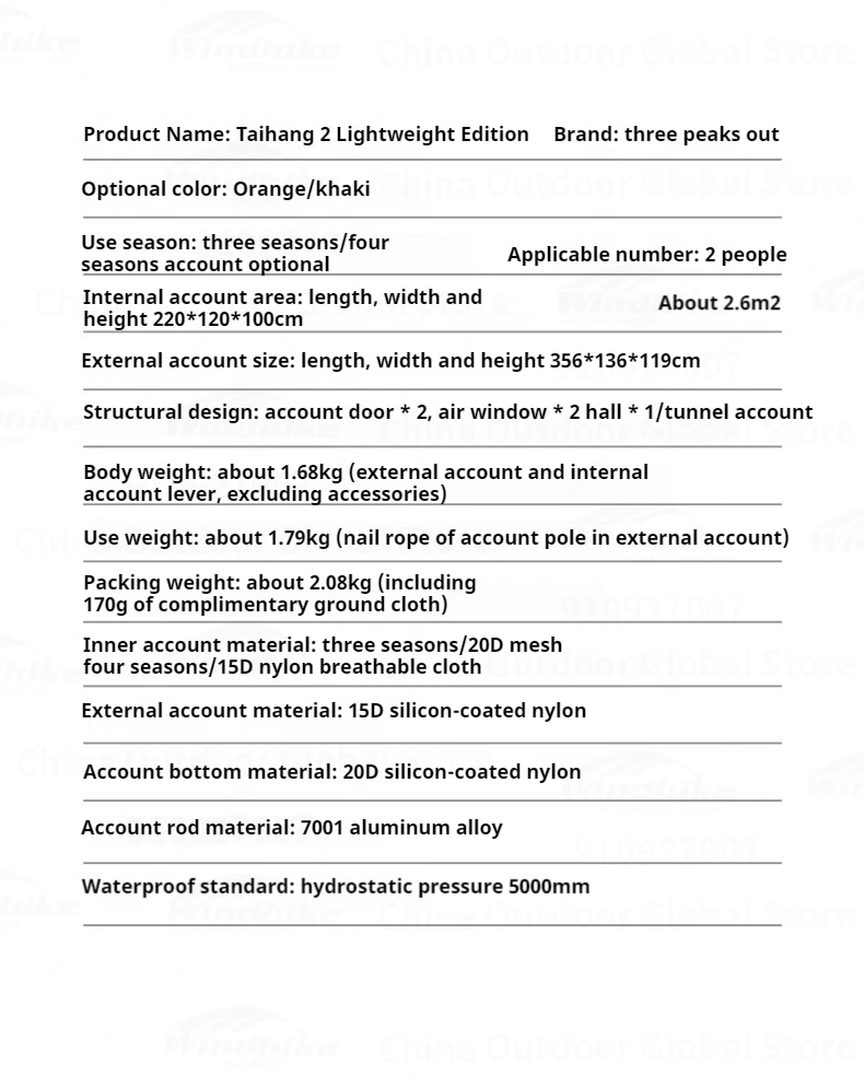 Packing Weight: About 2.08kg(Including 170g Of Complimentary Ground Cloth)