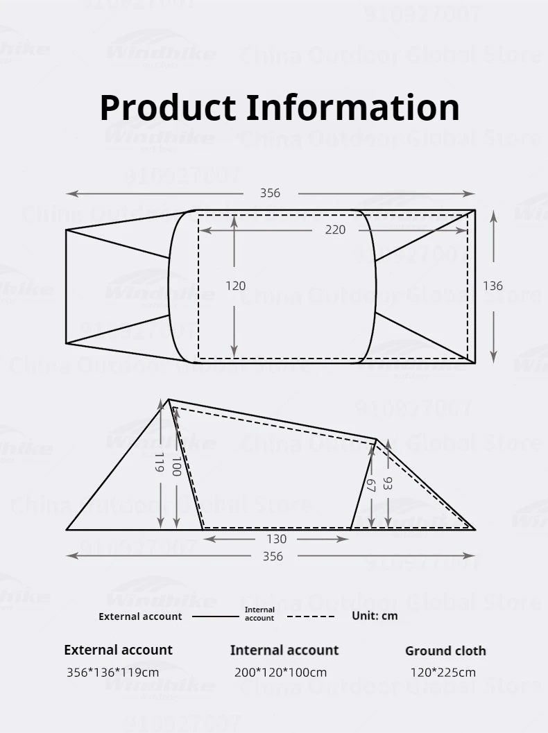 Internal Tent Area: 220*120*100cm, About 2.6㎡