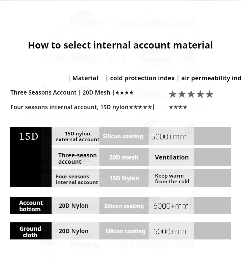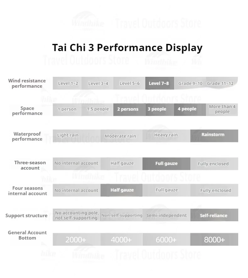 Outside Tent Waterproof Index: >3000 mm