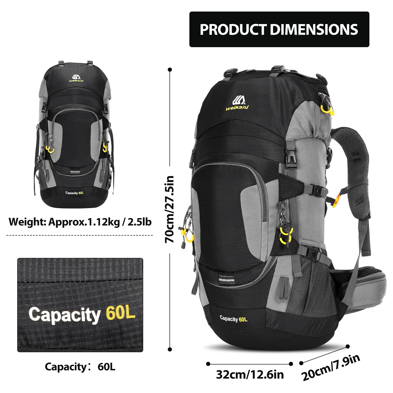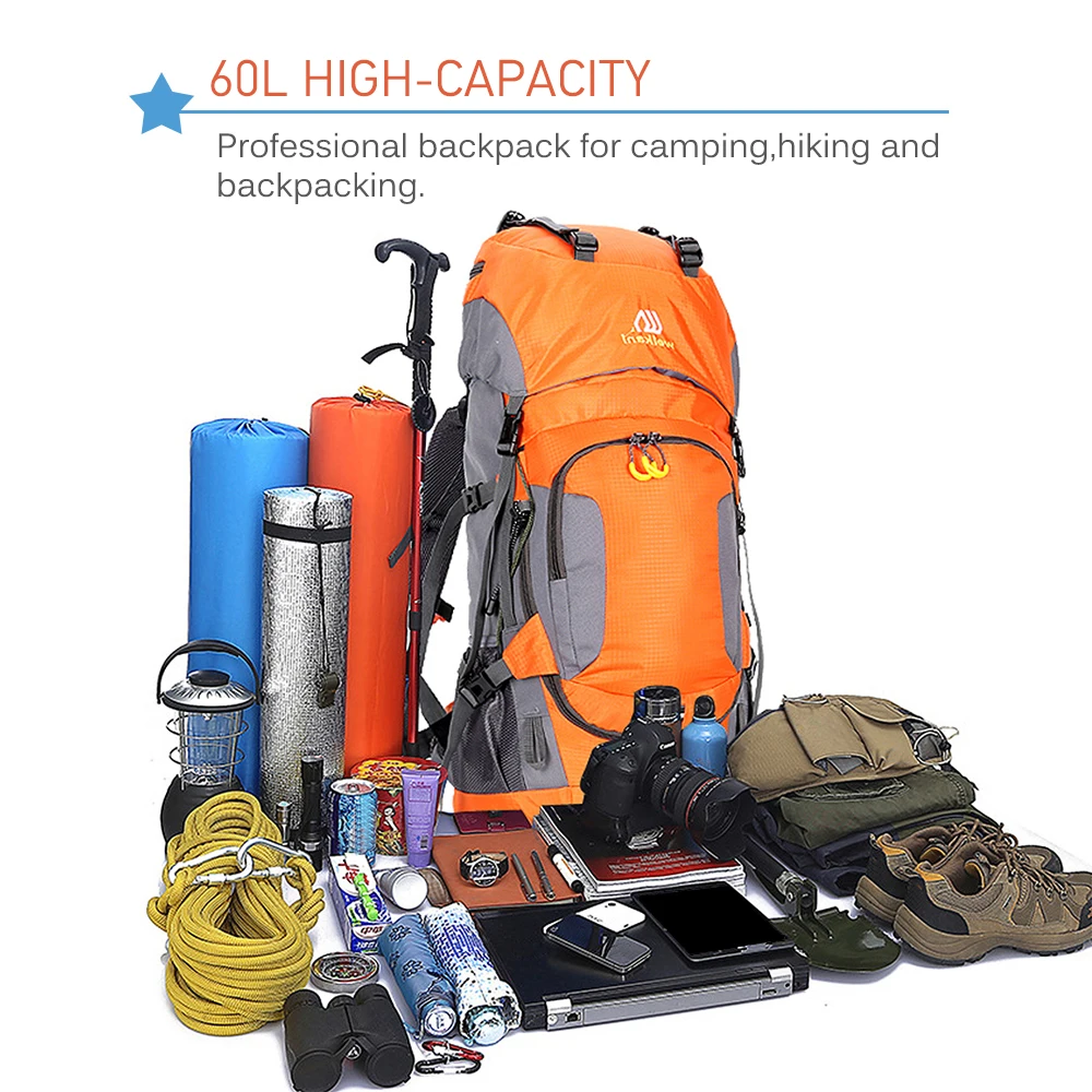 60L hiking backpack offers large space to pack all your necessities and equipment.