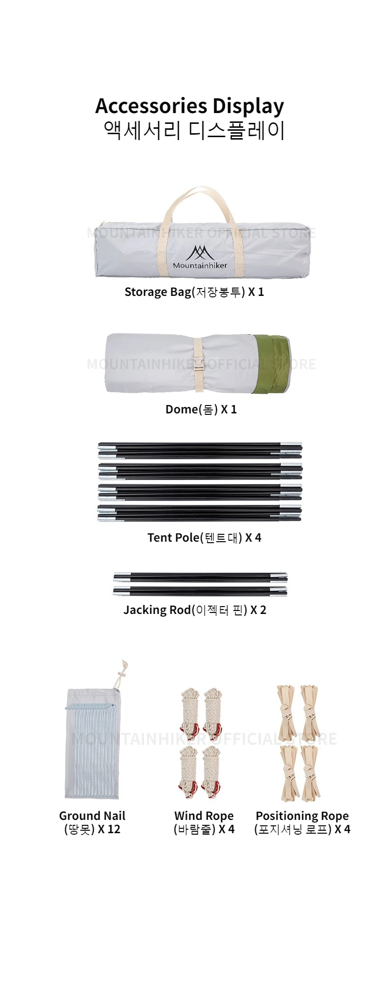 Outside Tent Waterproof Index(외부 텐트 방수 지수): 2000-3000 mm