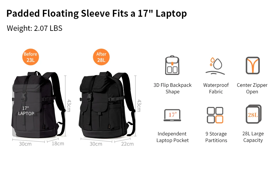 Capacity: before expansion: 23L, after expansion: 28L
