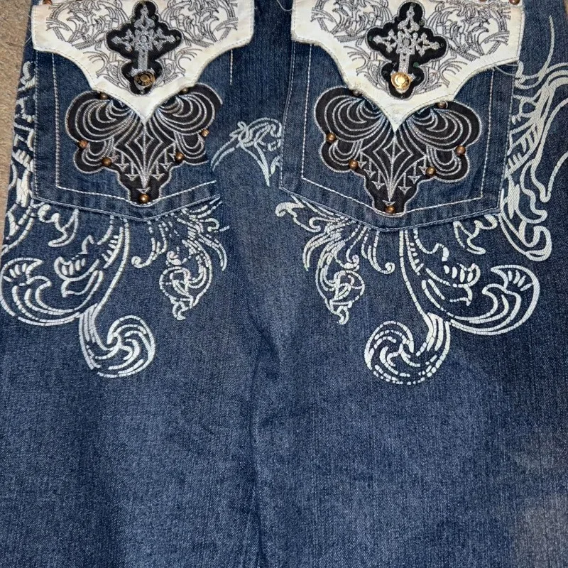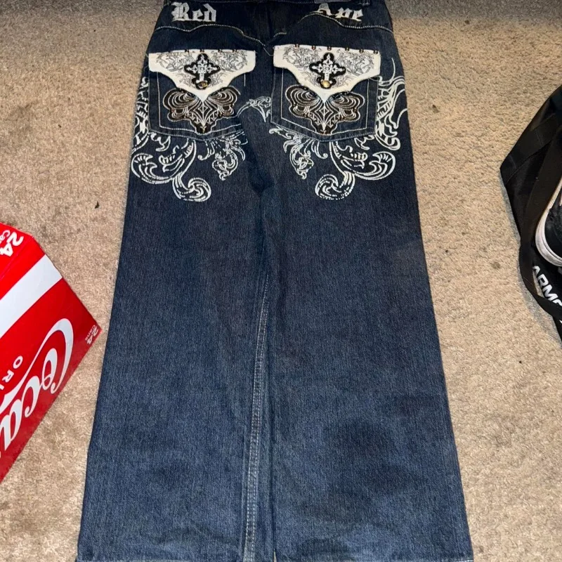 American New Pattern Embroidery Baggy Jeans Male Y2K High