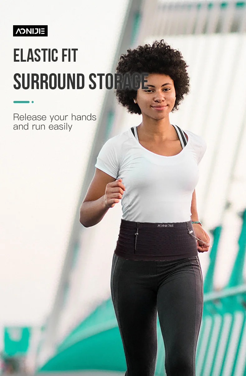 AONIJIE Woven Elastic Sports Waist Pack Men Women Trail Running Belt Hydration Waist Bag Phone Holder Gym Fitness Marathon W8116