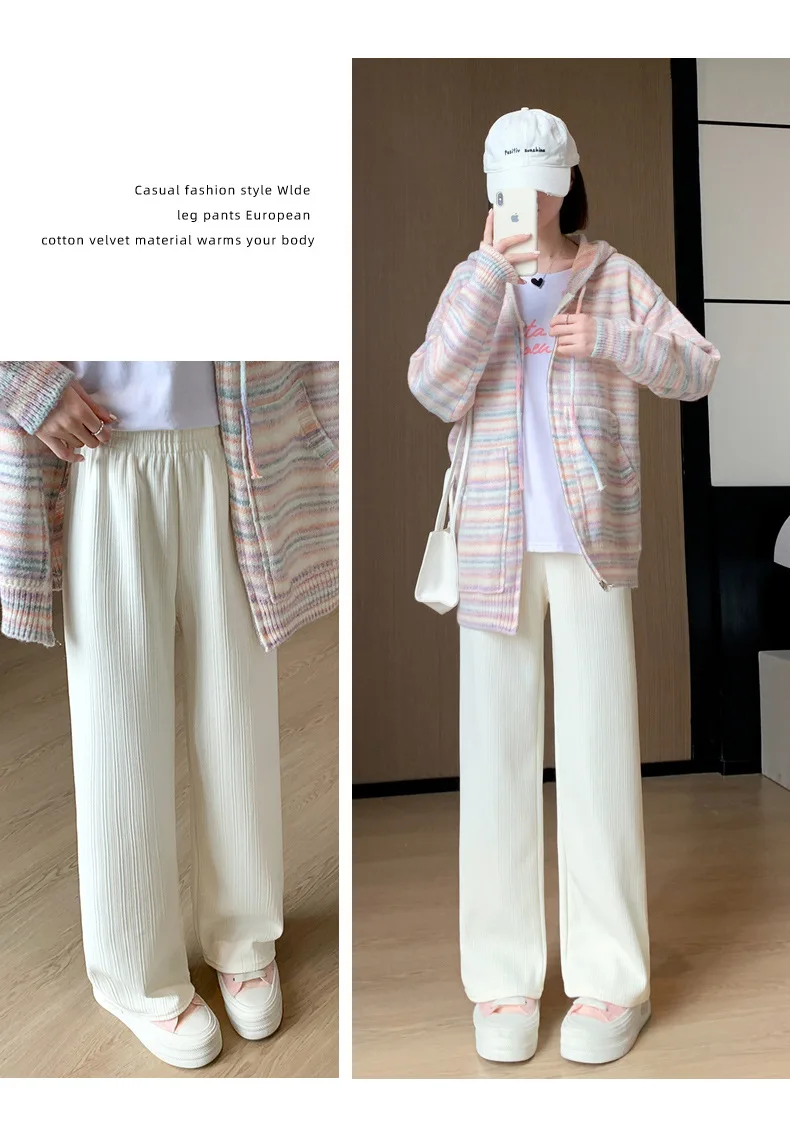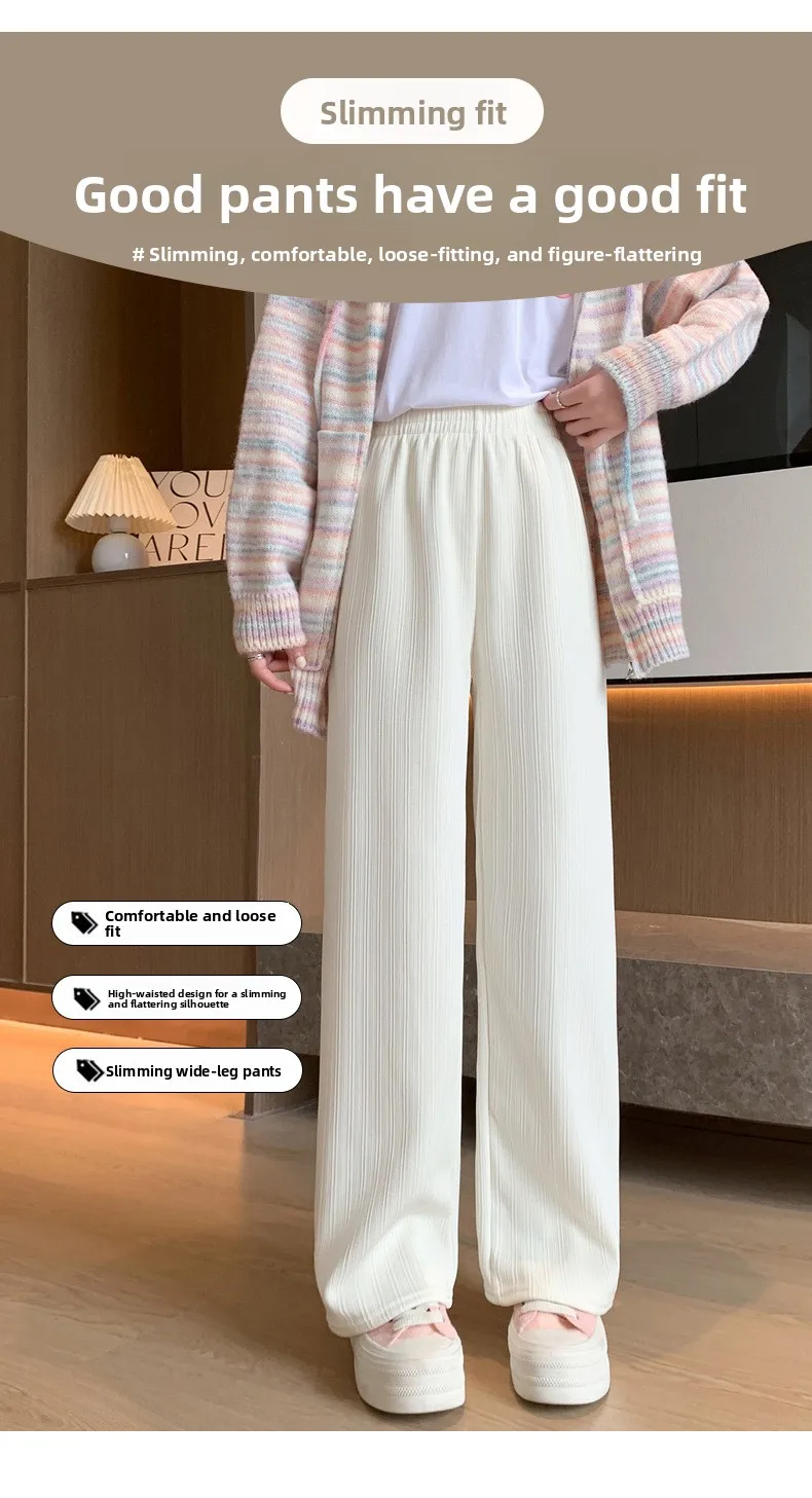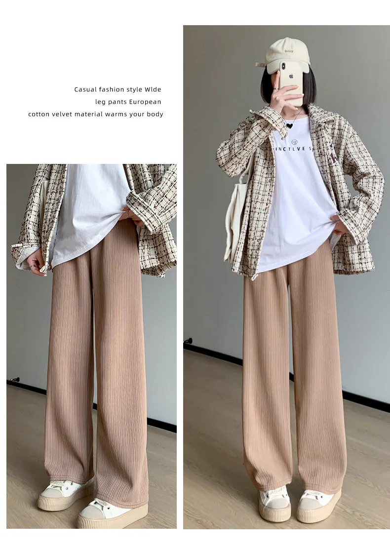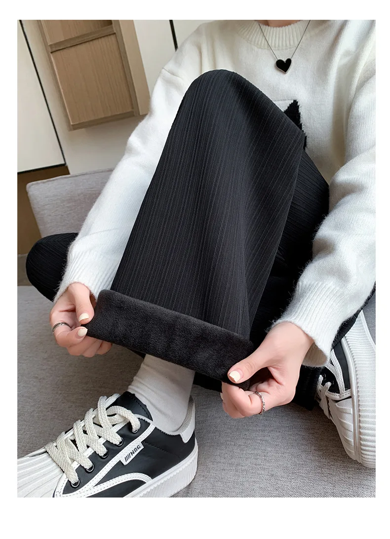 Autumn and Winter Fleece-lined Wide Leg Pants Women's High