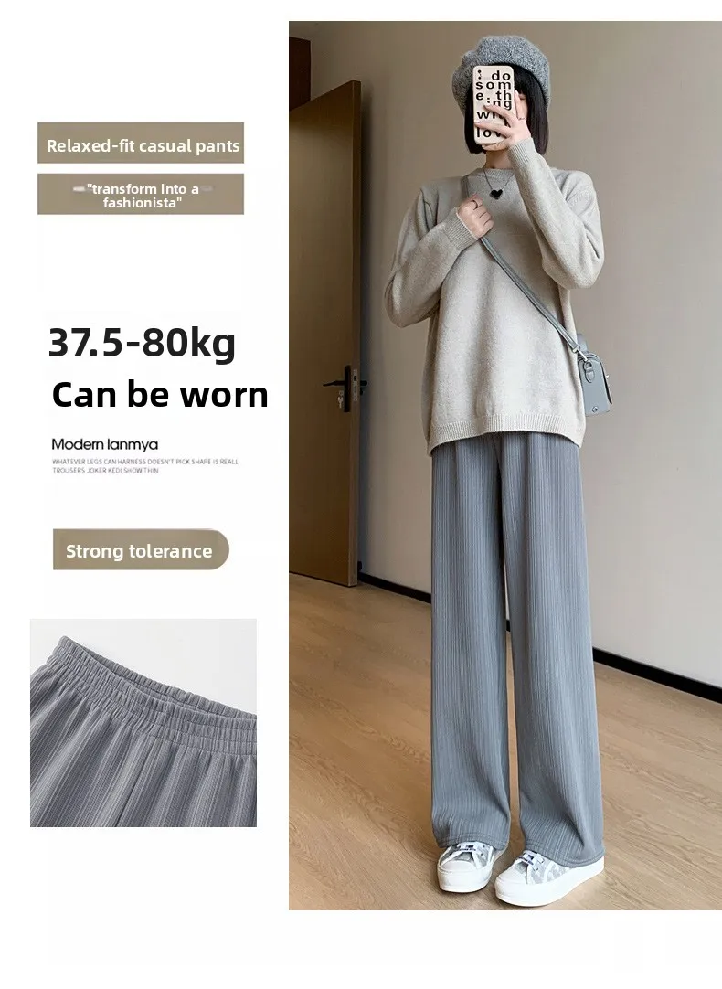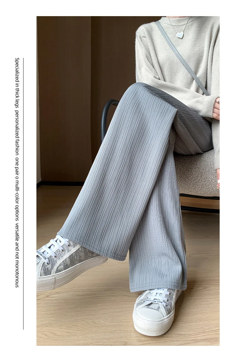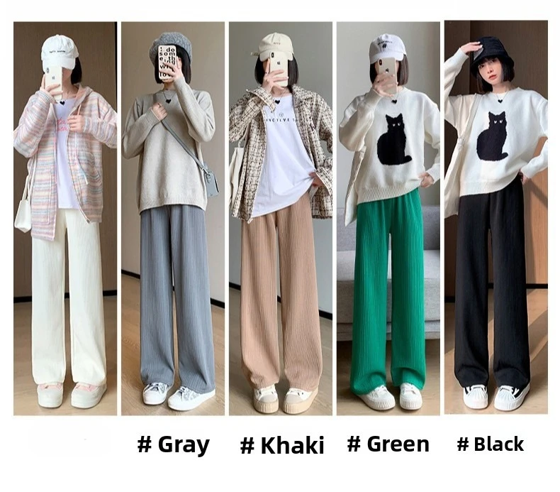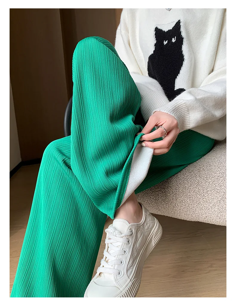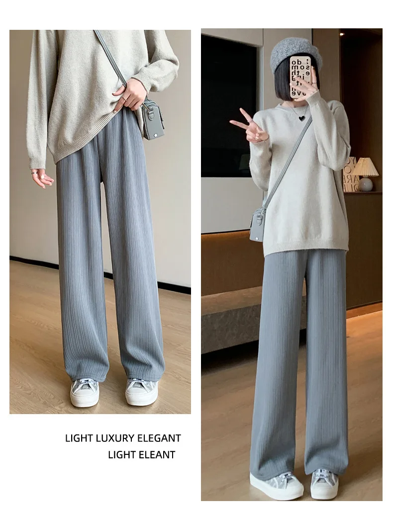 Autumn and Winter Fleece-lined Wide Leg Pants Women's High