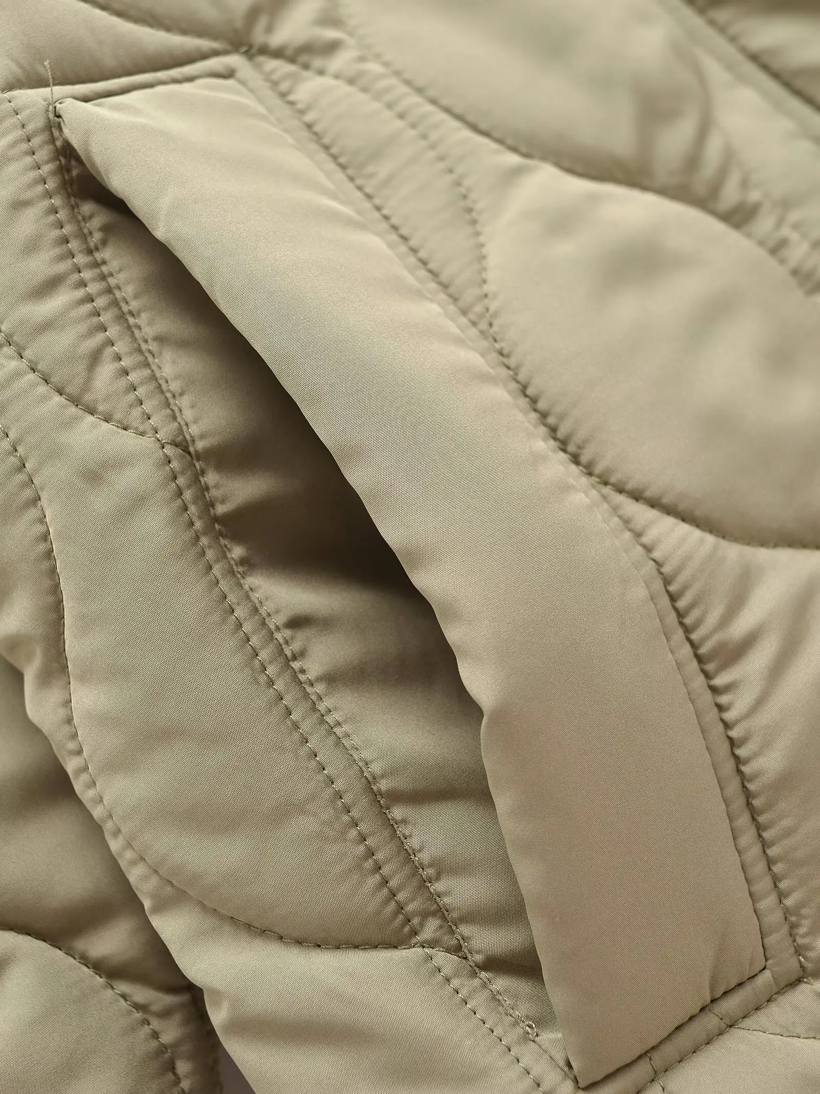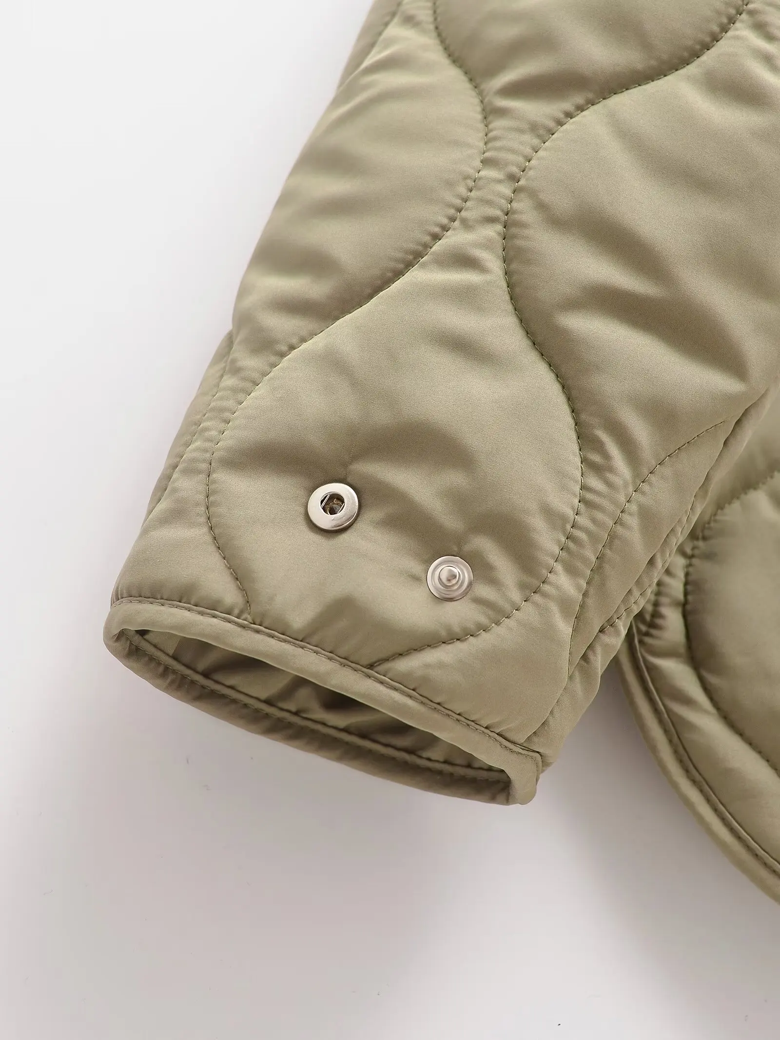 Healing quilting: rounded water wave quilting breaks the stereotype of cotton coats, khaki color is gentle and versatile, with a "relaxation filter", and you will be asked for links when you wear it out.