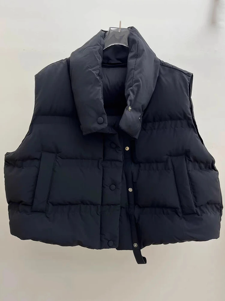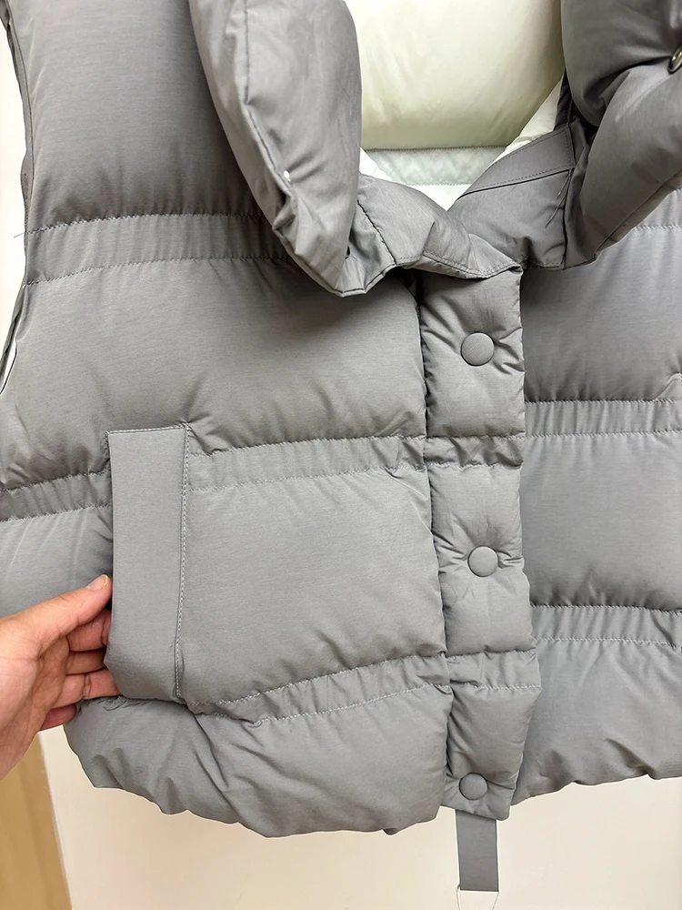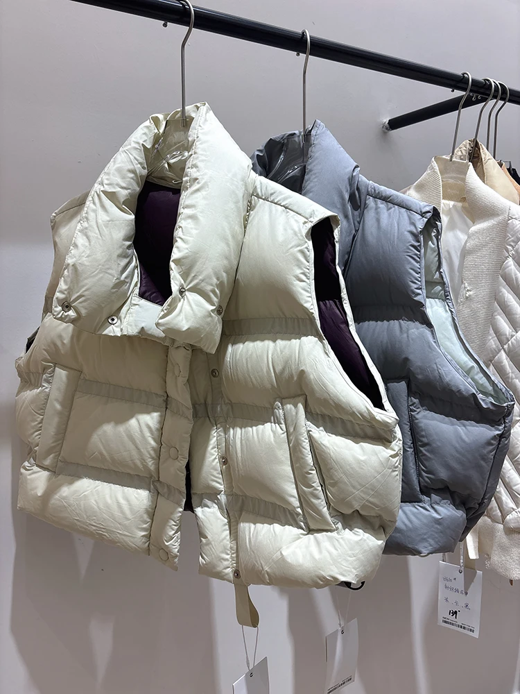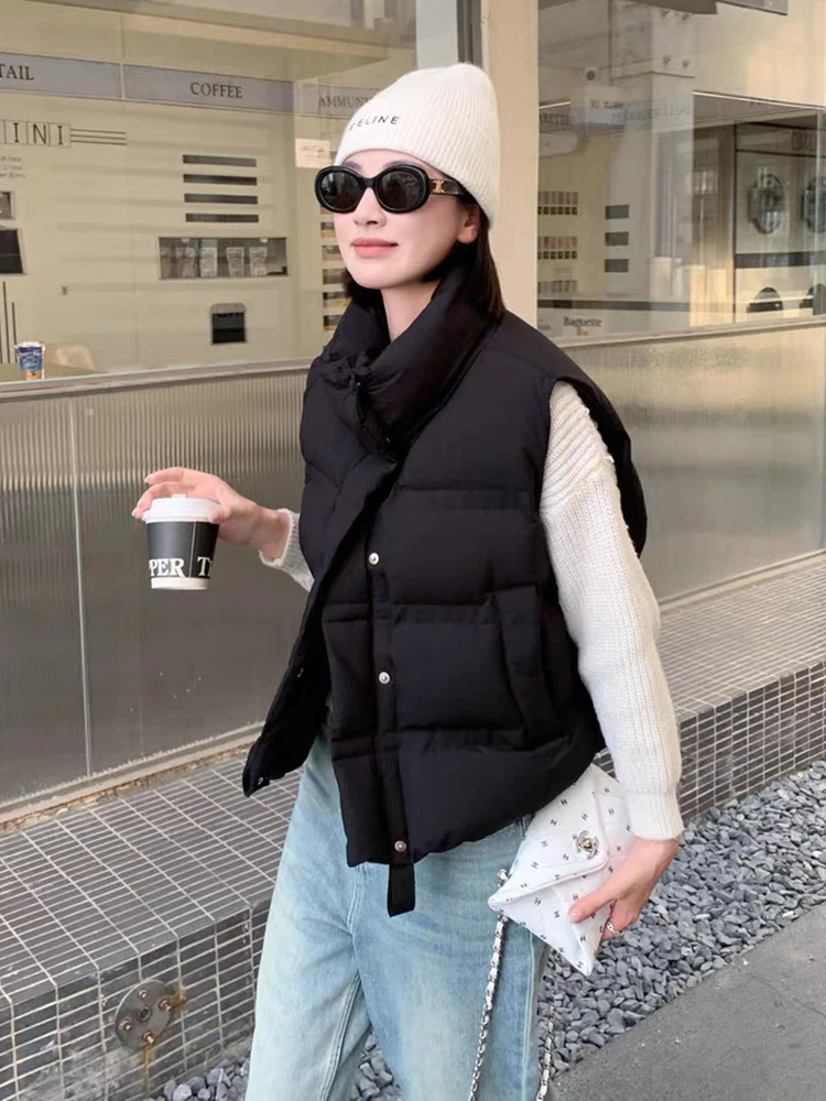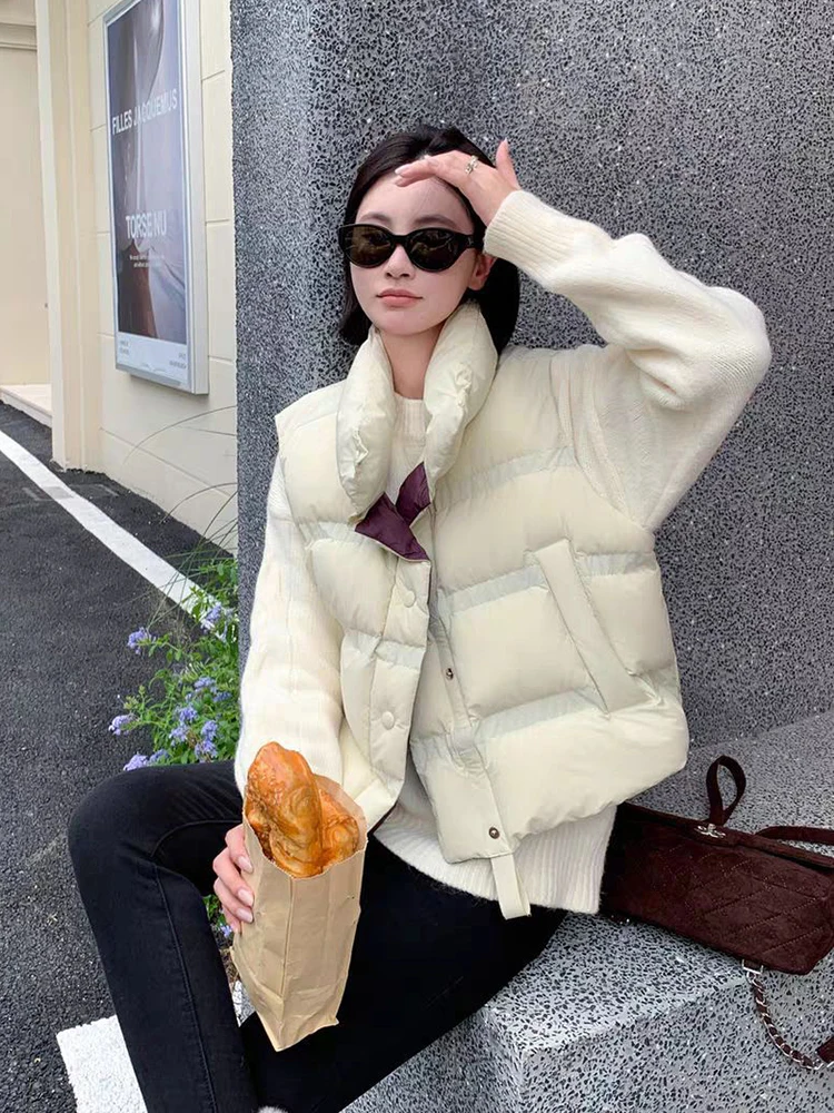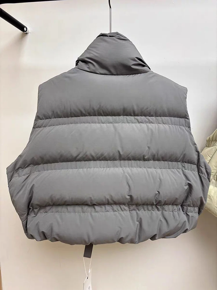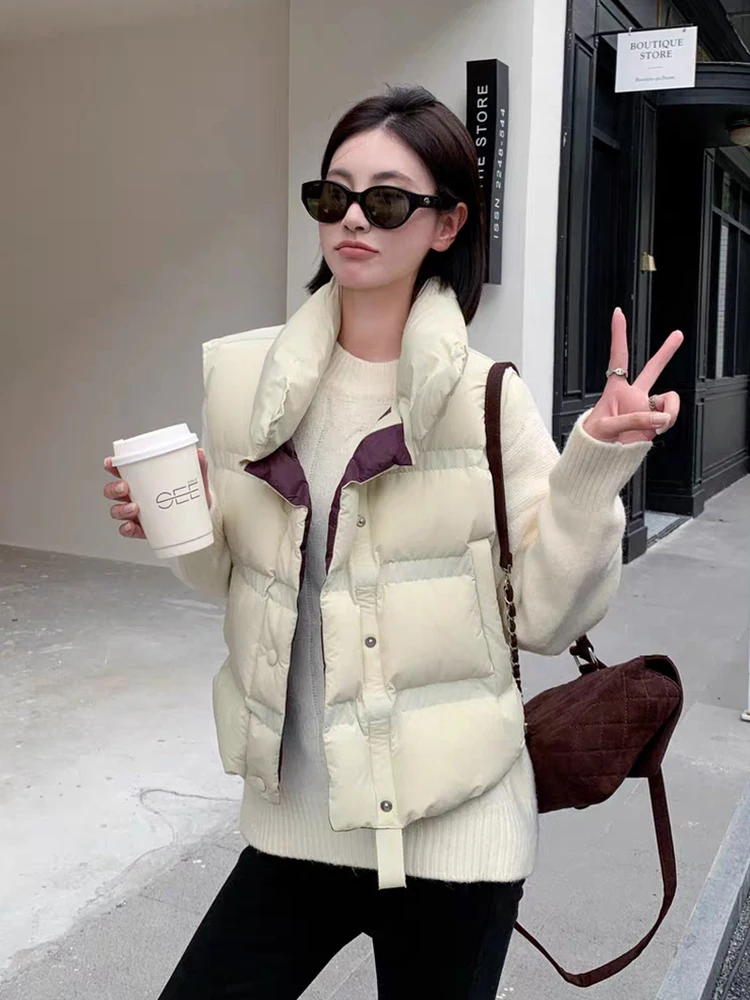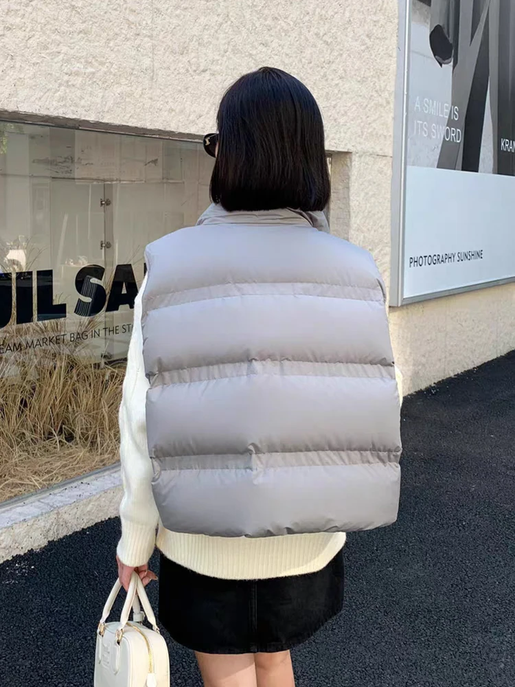 Autumn Winter Solid Stand Collar Puff Down Vest Women White