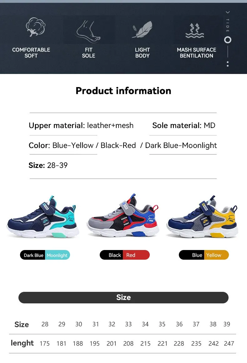 Baasploa Children Sport Shoes Comfort Mesh Breathable Casual