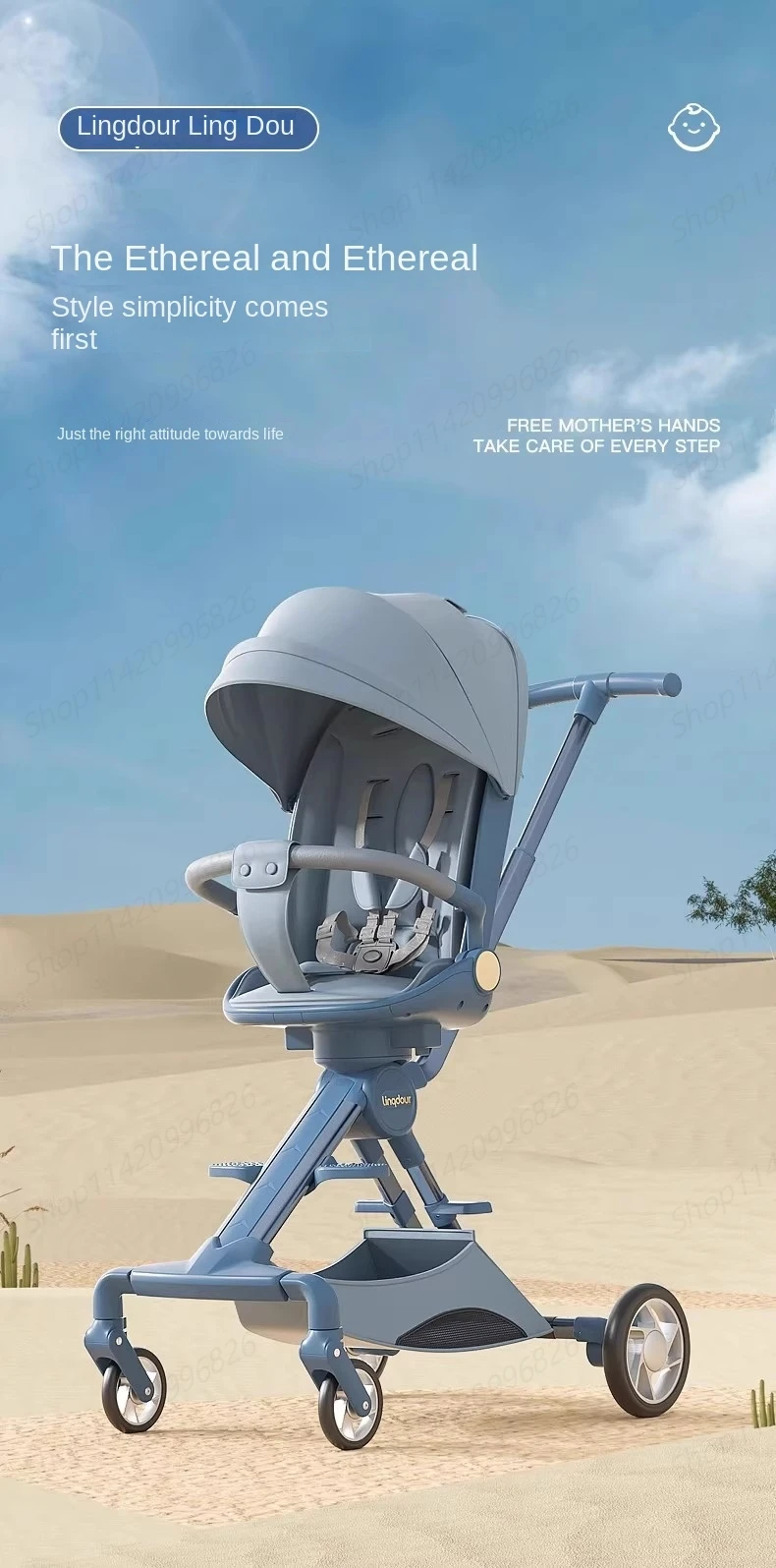 Baby Stroller Can Sit or Lie Down a Button Folding