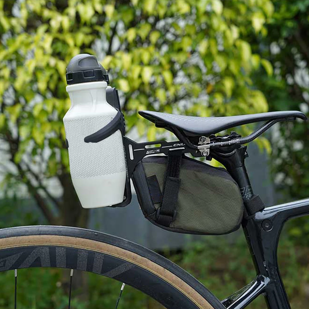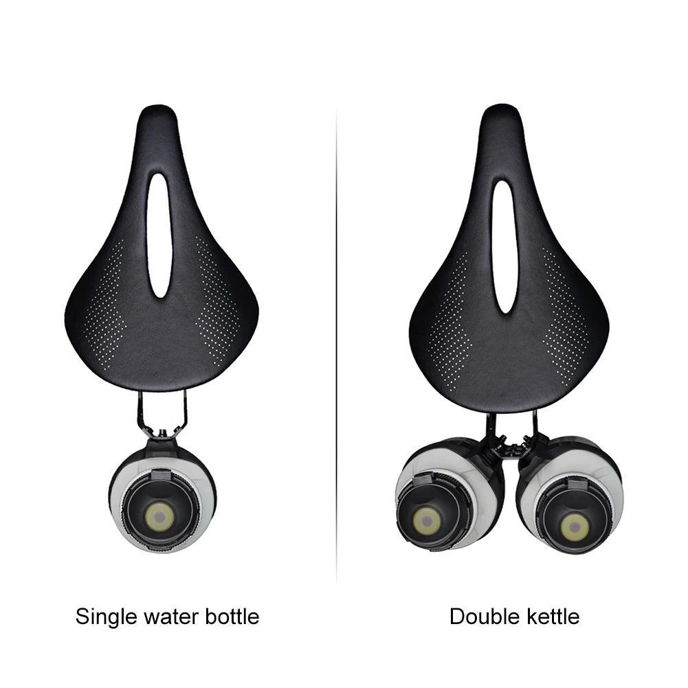 Bicycle Saddle Bottle Cage Extension Holder Aluminum Alloy Bicycle Water Cup Holder Saddle Mount Rack for Outdoor Cycling Features: 1. Metal Durability: Crafted entirely from metal, this bicycle saddle bottle cage extension holder is built to last, offering unparalleled strength and longevity for avid cyclists. 2. Dual Bottle Conversion: Our bike bottle cage saddle mount adapter is ingeniously designed to hold two water bottle cages, doubling your hydration capacity for those long rides without compromising on space or convenience. 3. Premium Finish: Upgraded craftsmanship gives this bicycle seat rack adapter a unique metallic texture that not only feels great but also adds an aesthetic edge to your bicycle, reflecting a high standard of quality. 4. Expandable Utility: The versatile design of our lightweight bike saddle cup cage adapter allows for additional cycling essentials such as saddlebags, mini pumps, and extra water bottle cages, ensuring you're well-equipped for any journey. 5. Lightweight Build: Engineered for minimal weight without sacrificing strength, our bicycle water cup holder saddle mount rack won't weigh you down, making it perfect for cyclists who are conscious of their bike's weight.