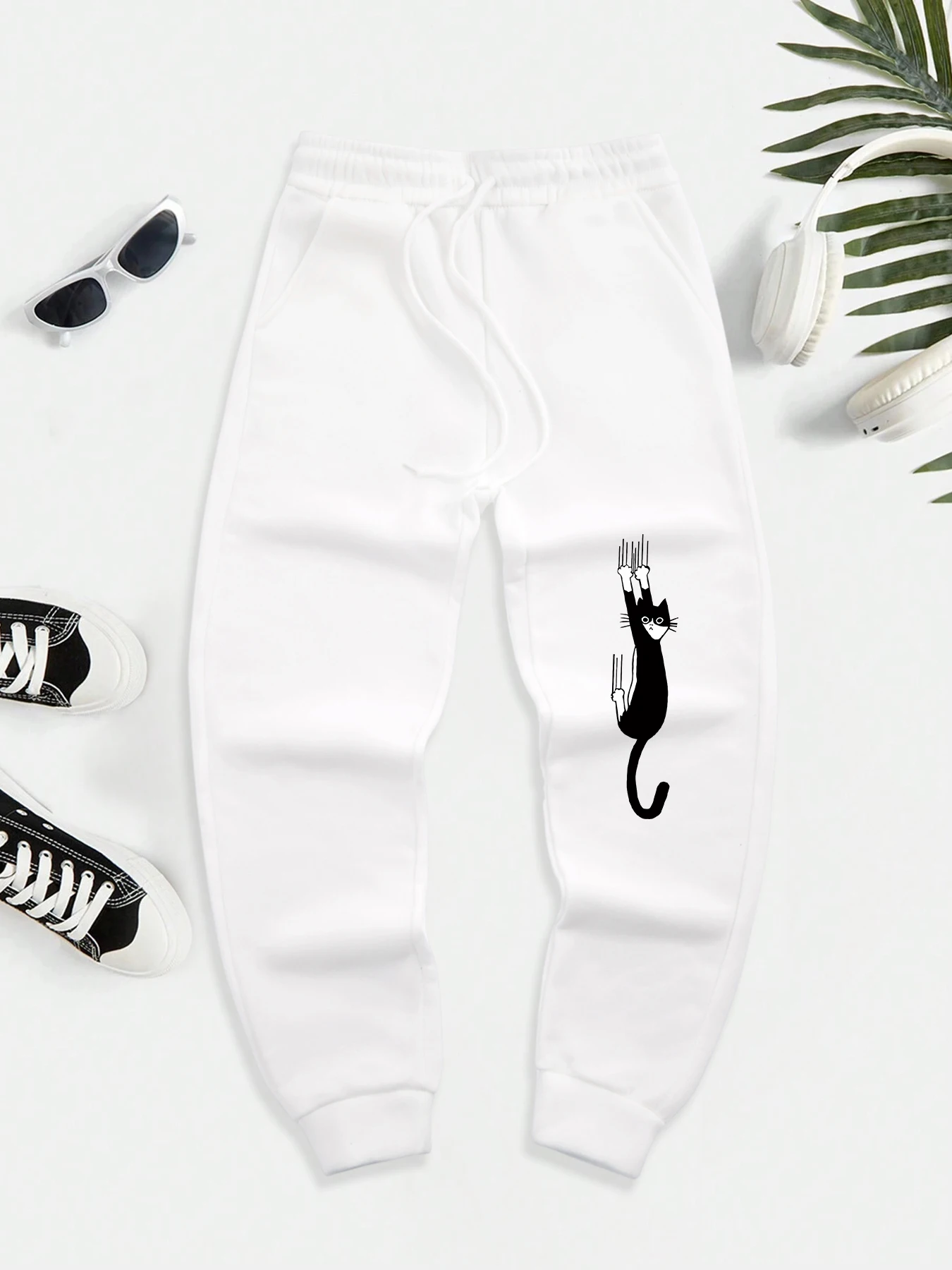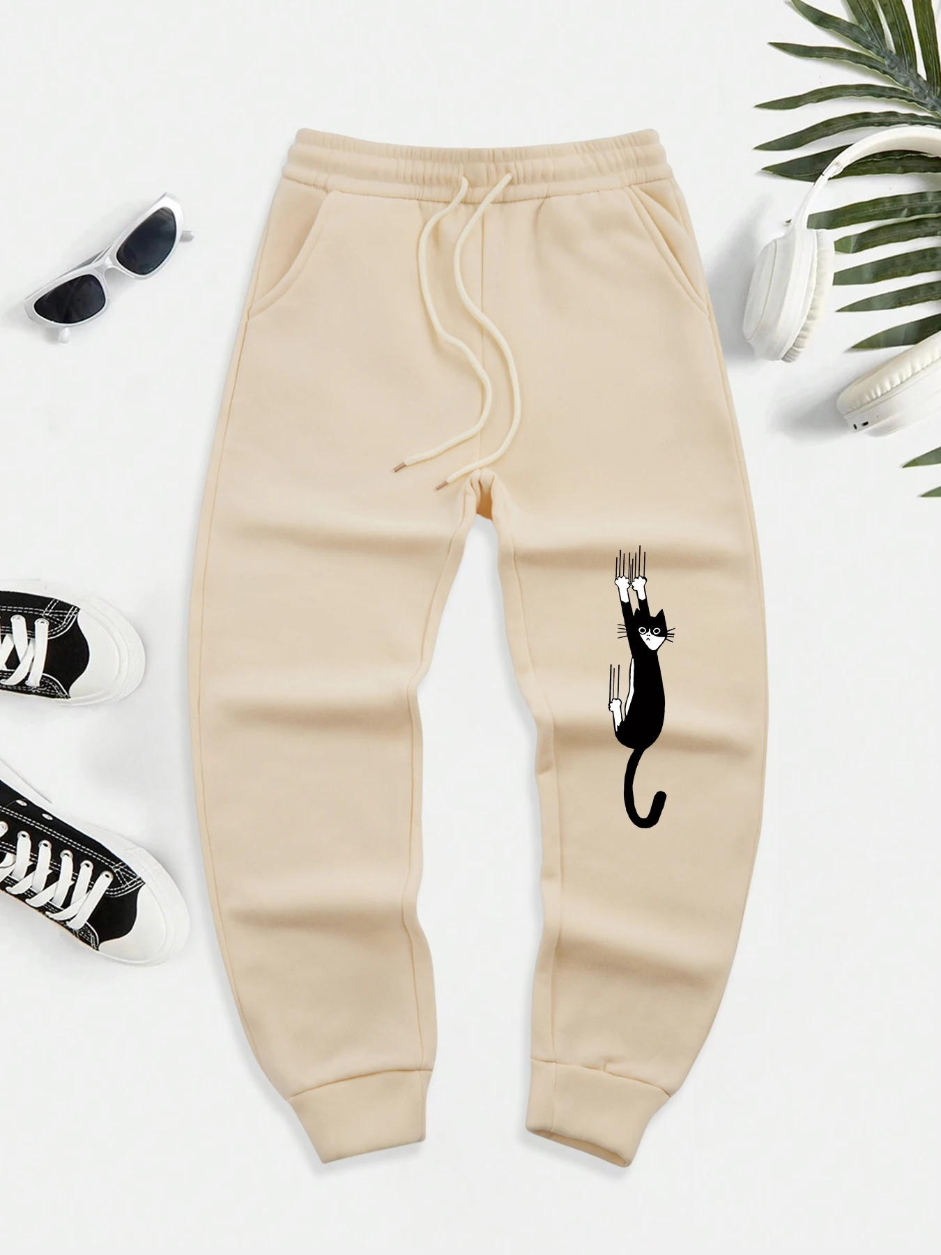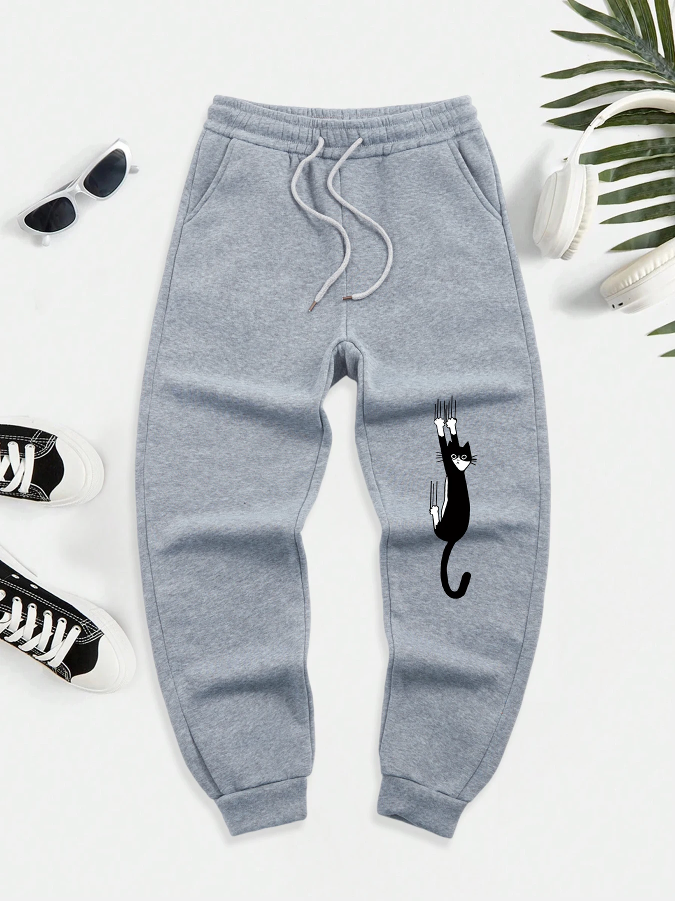 Black Cat Scratch Printed Men Autumn Warm Sweatpant Casual