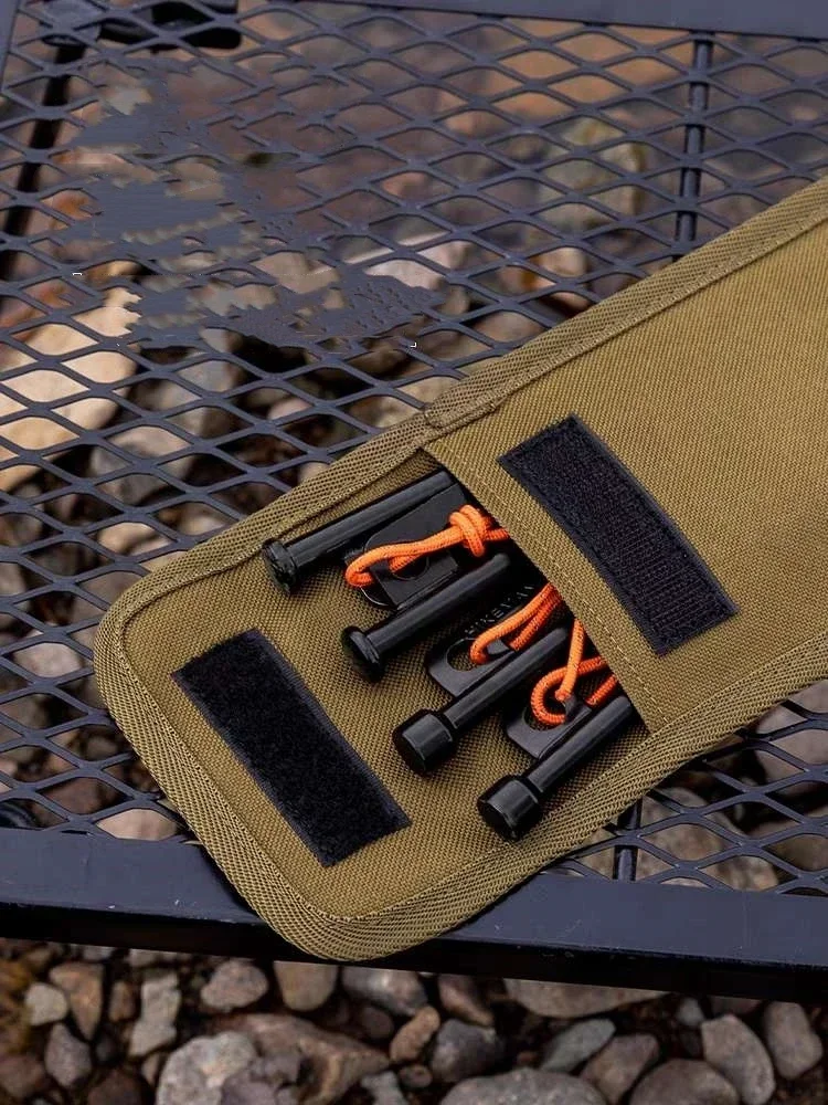 The handheld organizer envelope bag makes it easy to carry and store ground nails, keeping your camping gear organized and accessible.