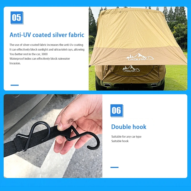 1. Come on a walk-and-go trip: easy to carry, no complicated operations, just put the product on the car and choose the appropriate hook, you can turn your into a camper in just a few minutes