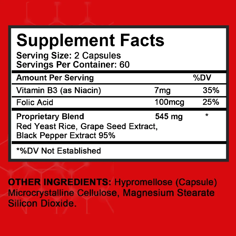 Ingredients: red yeast rice,grape seed extract,folic acid