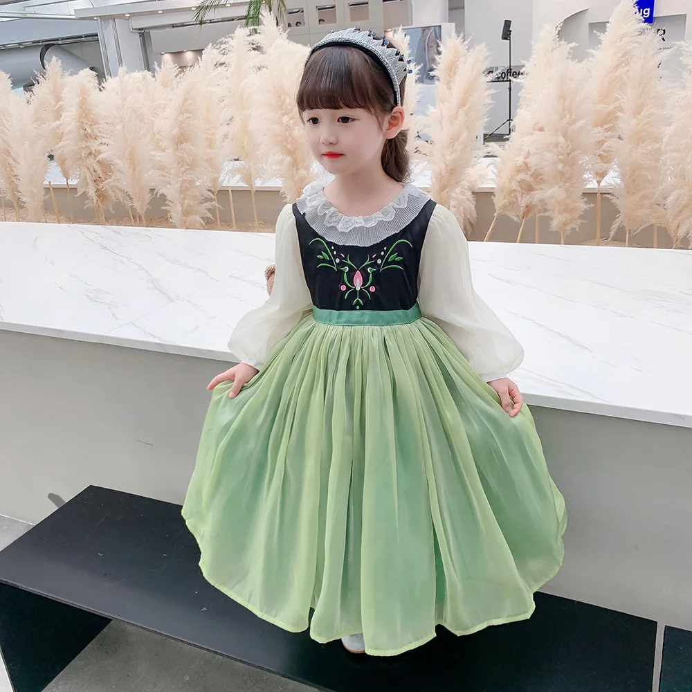Clothing for New Kids Summer 2025 Quality Korean Style Anna Baby Girls One Piece Princess Sundress Dress Up Girl Green Party
