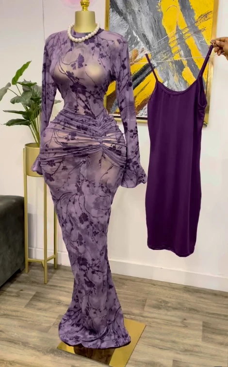 CM.YAYA Women Long Sleeve Stacked Mesh See Though with
