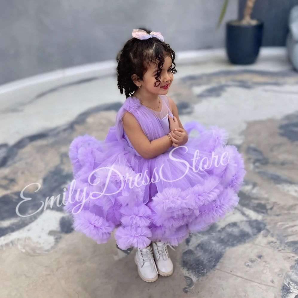 Customized Purple Flower Girl Dress For Wedding Applique