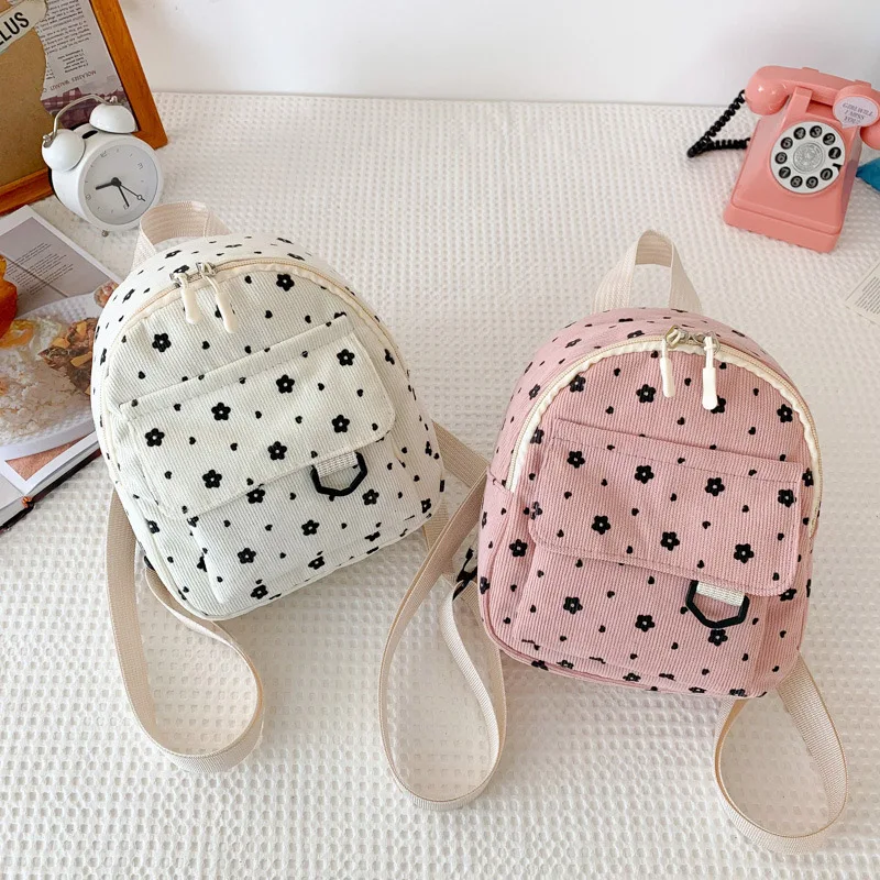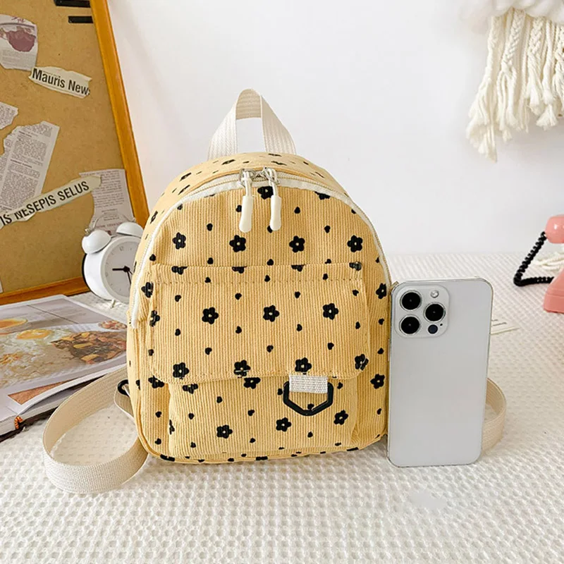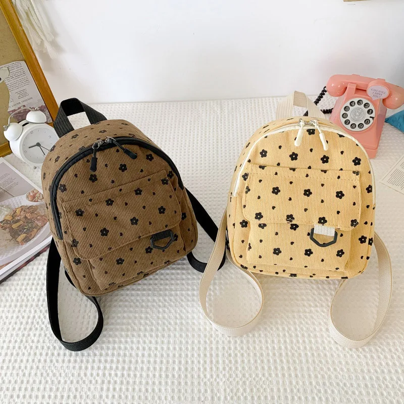 Cute Flower Print Baby Backpacks Lightweight Corduroy Mini