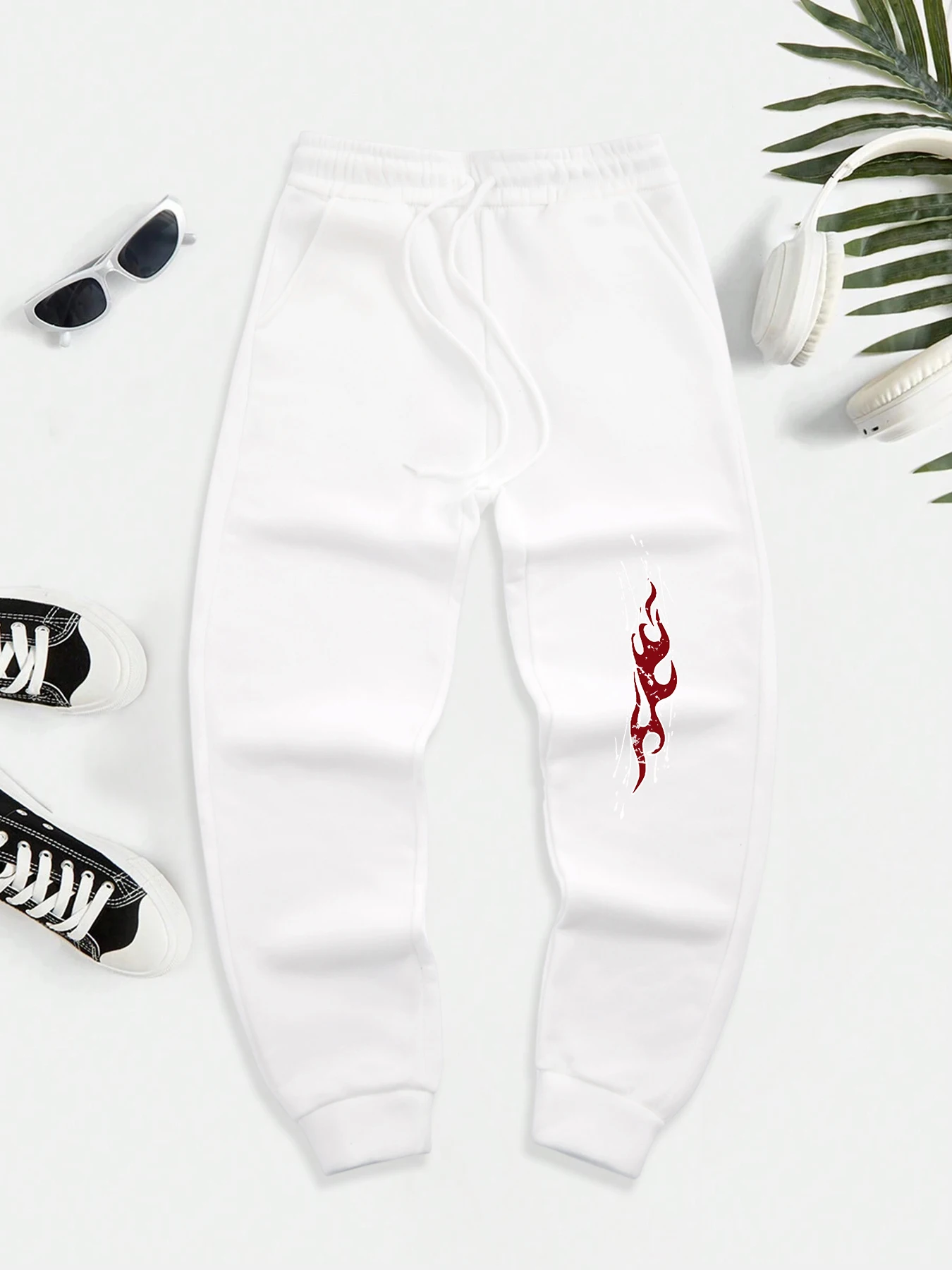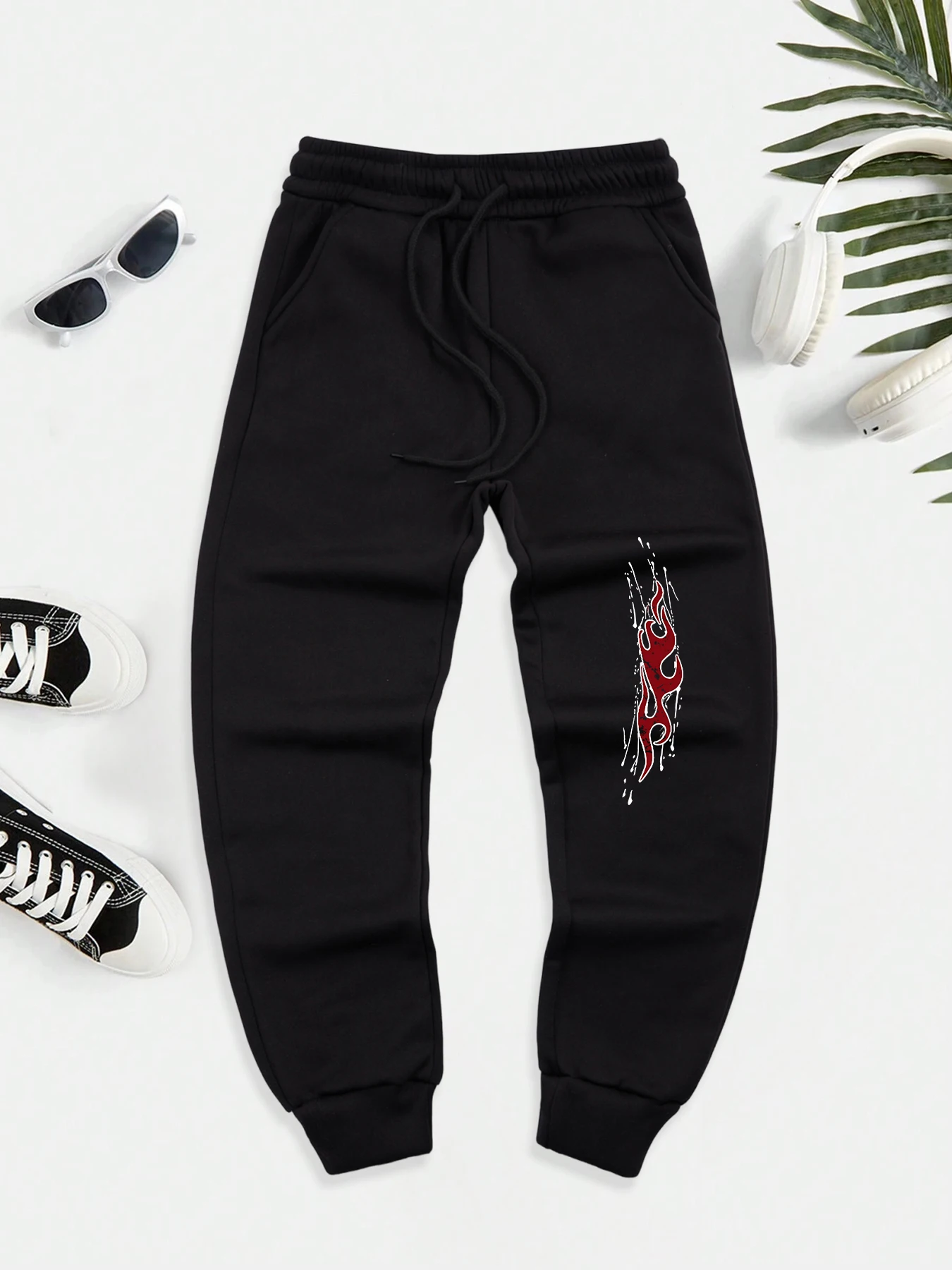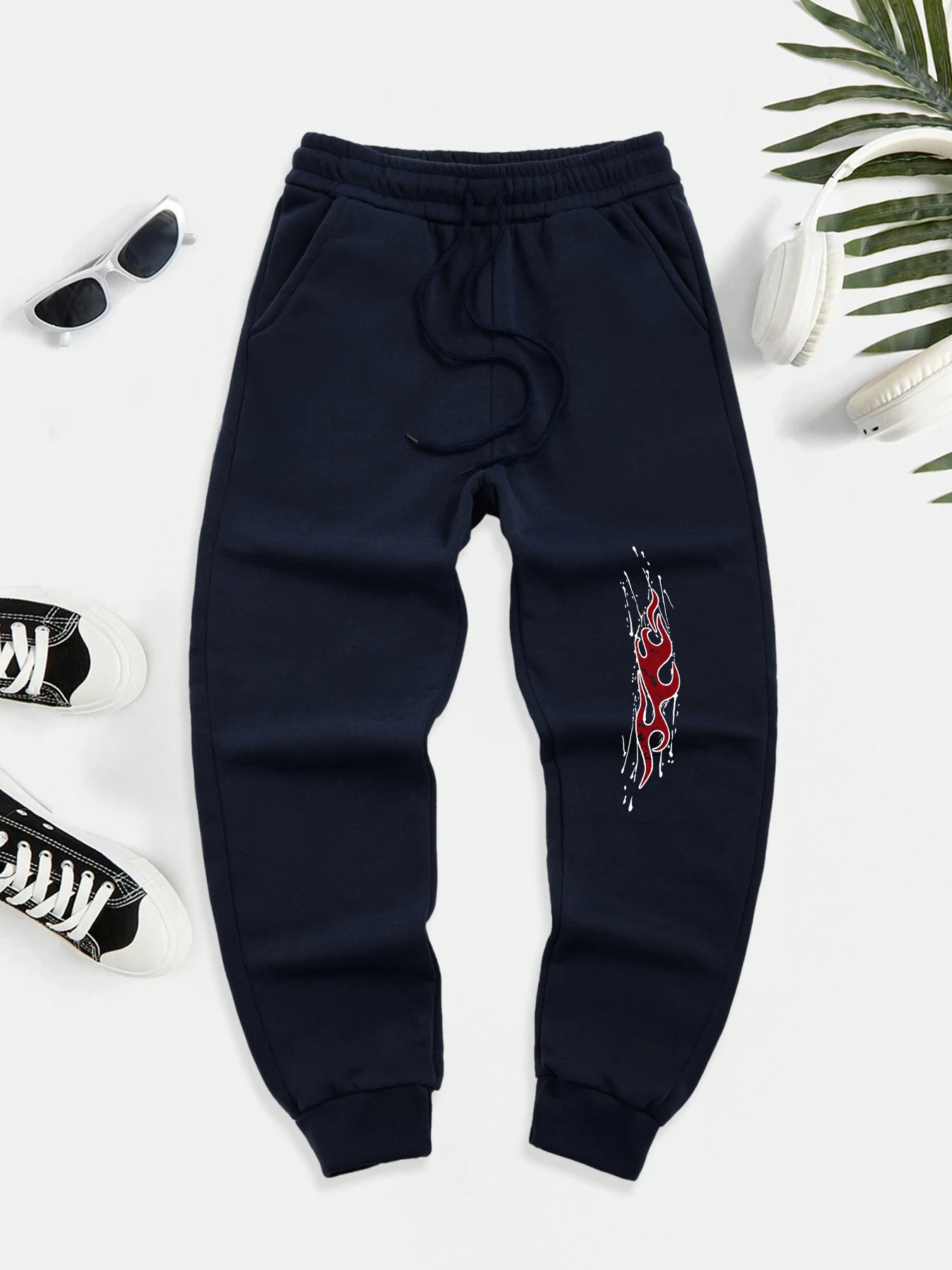Dark Red Flame Print Men New Drawstring Jogging Pant Autumn