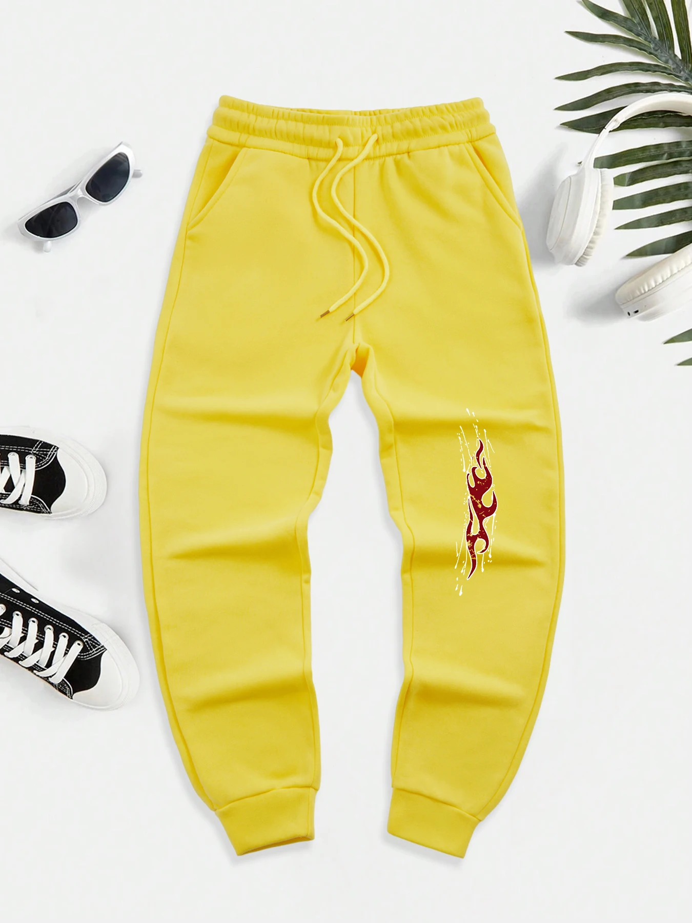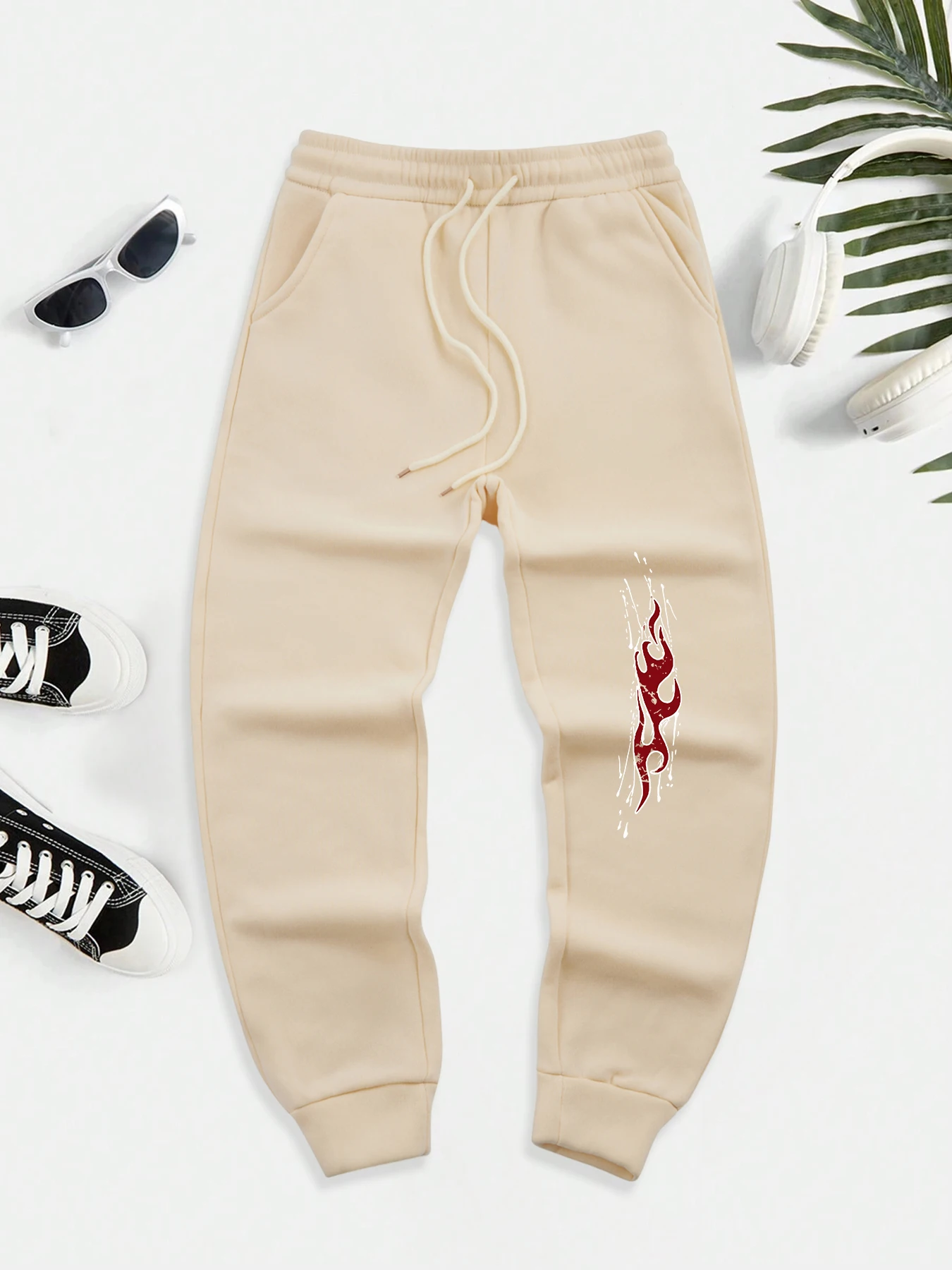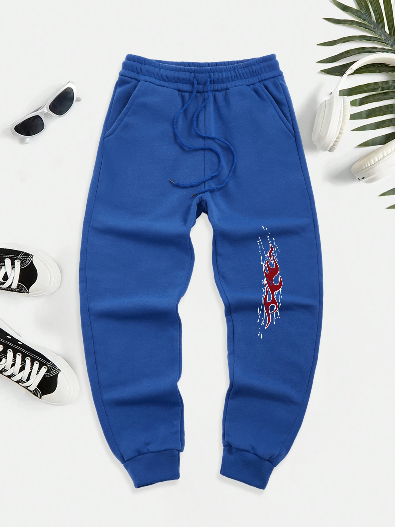 Dark Red Flame Print Men New Drawstring Jogging Pant Autumn