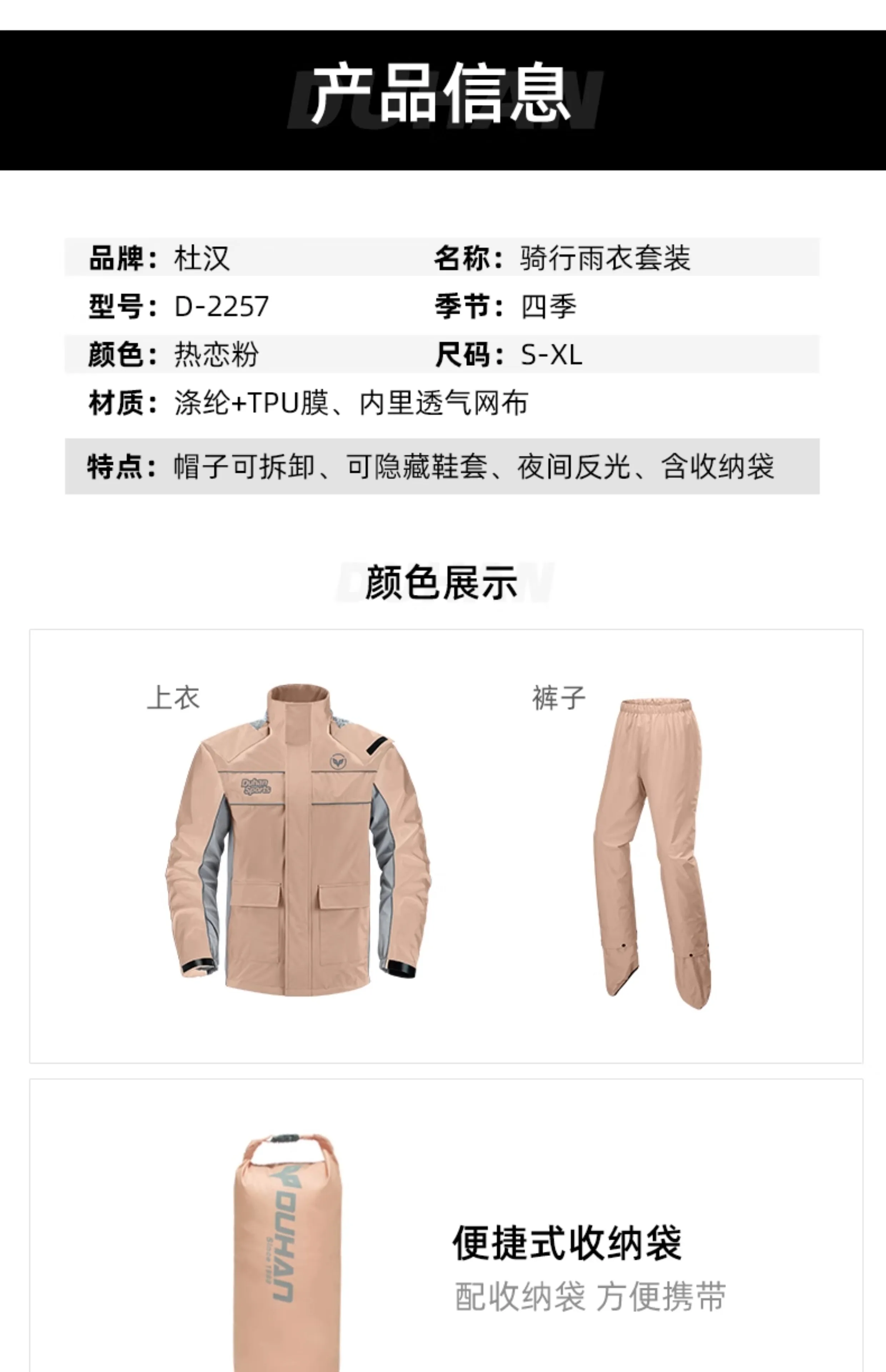 DUHAN Women's Motorcycle Raincoat Split Type Rainstorm Proof