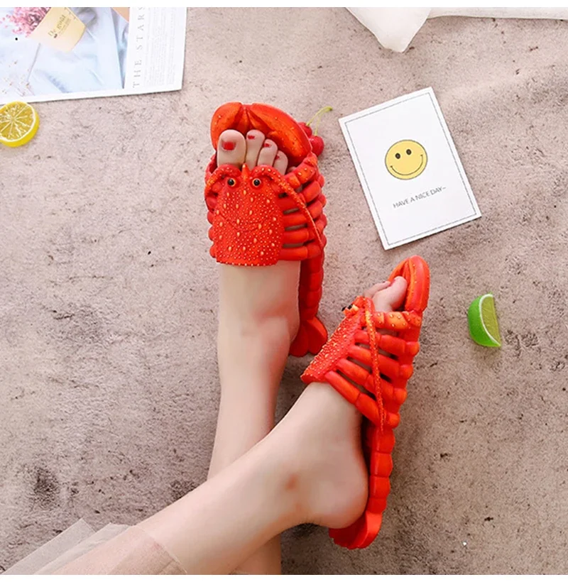 EOFK Lobster Slippers Women Funny Animal Summer Flip Flops