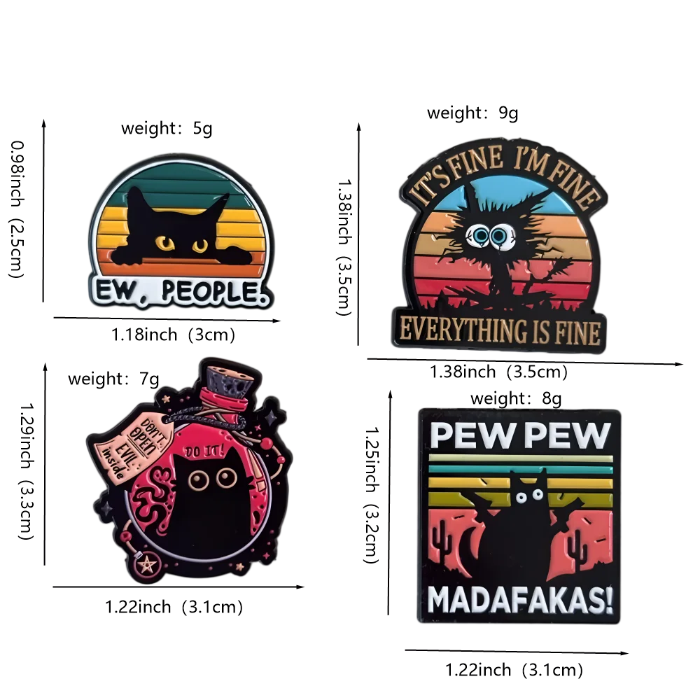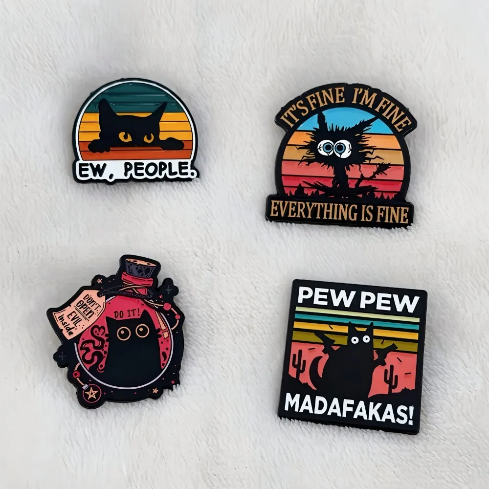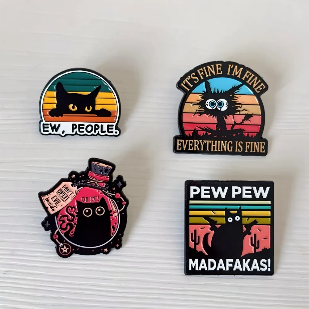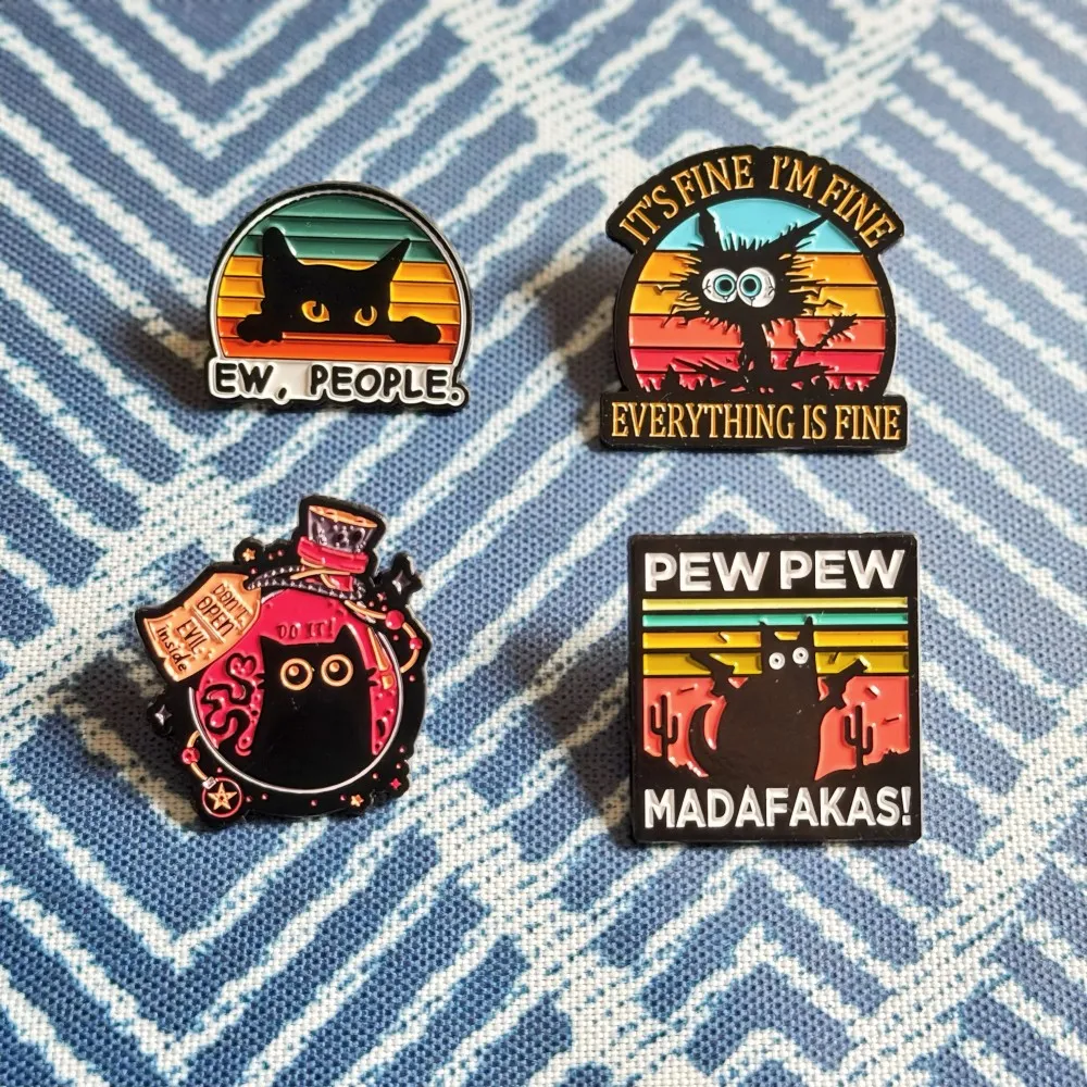 Ew,People Funny Black Cat Enamel Pin Brooches For Women