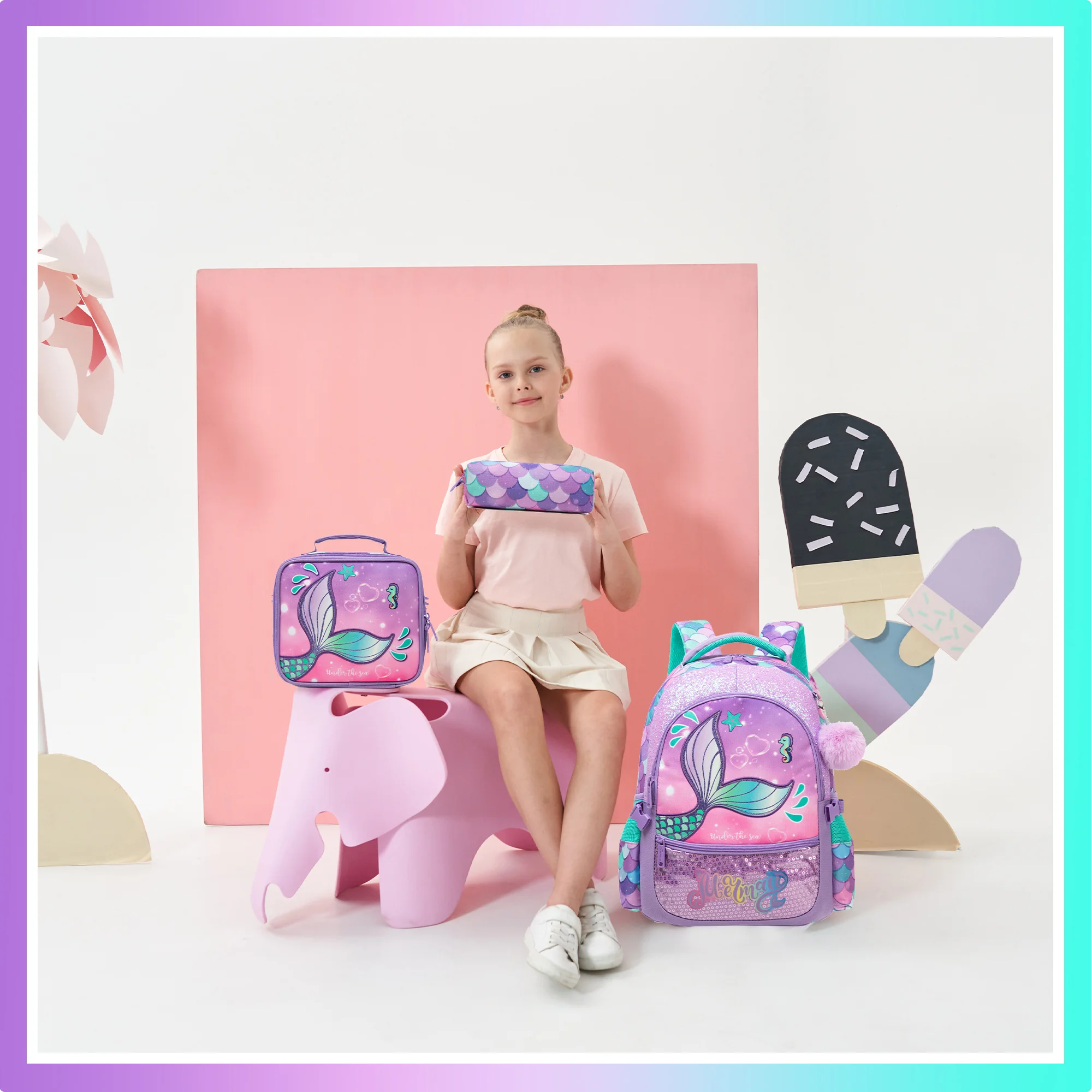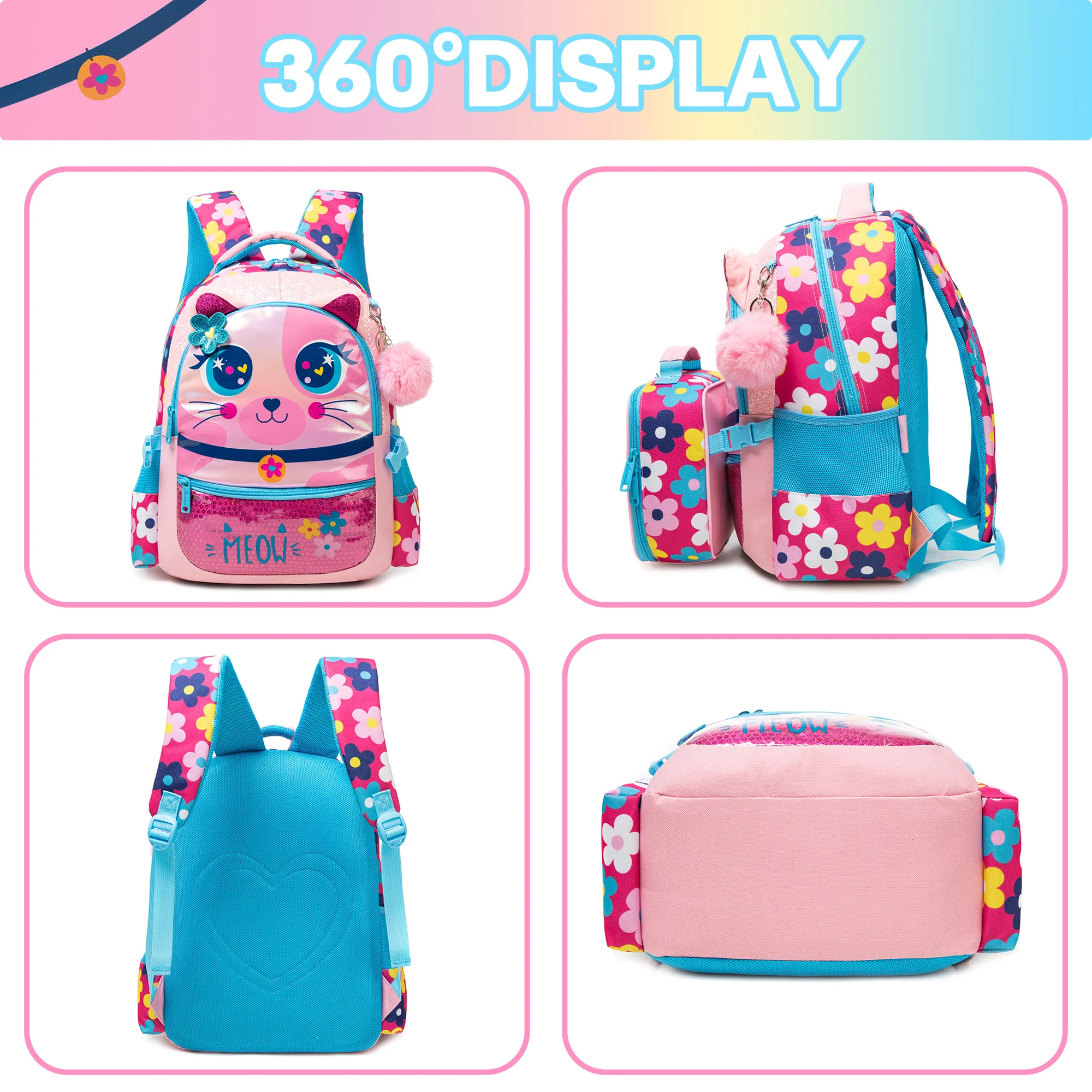 [Children's Backpack Size] Backpack: 16.5"x11.8.2"x6.7", Lunch Bag: 9.4"x8.3"x4", Pencil Case: 8.26". Includes a plush pendant. Versatile for children, it can be used to lighten the load on luggage, or as a backpack, or as a handbag with a handle on the top of the backpack.