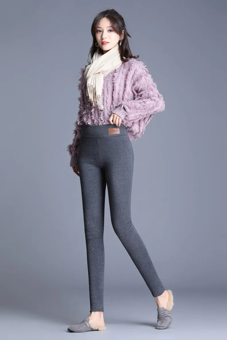 Fleece Lined Thermal Leggings Women Winter Leather Label
