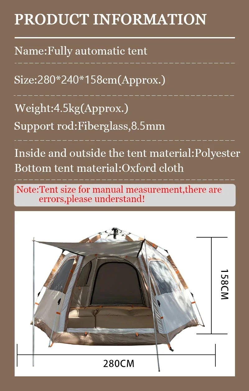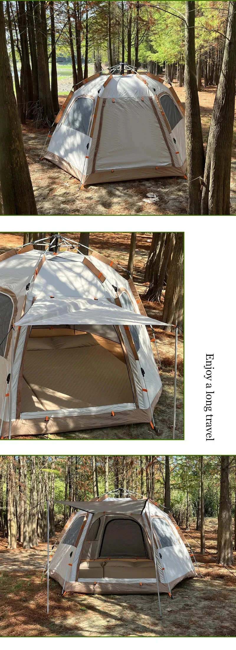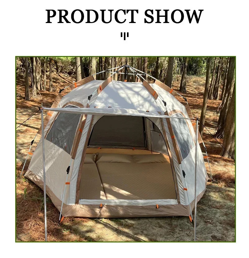 Fully Automatic Camping Tent 4-5 Person Quickly Open Outdoor Party Beach Tent Sunshade Waterproof Large Space Hexagonal Tent