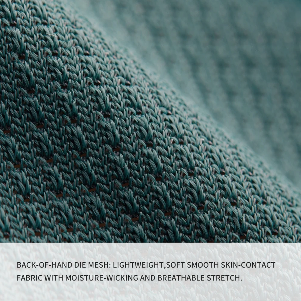 Lightweight, breathable/heat-dissipating mesh fabric for the back of the hand