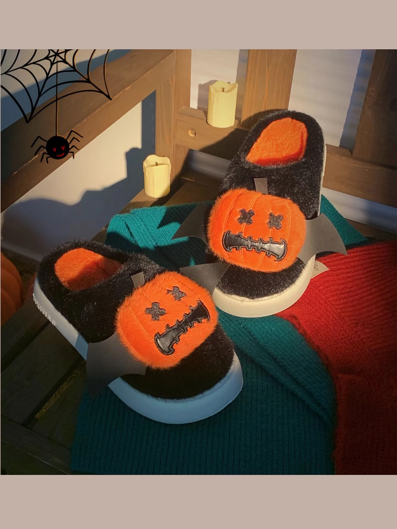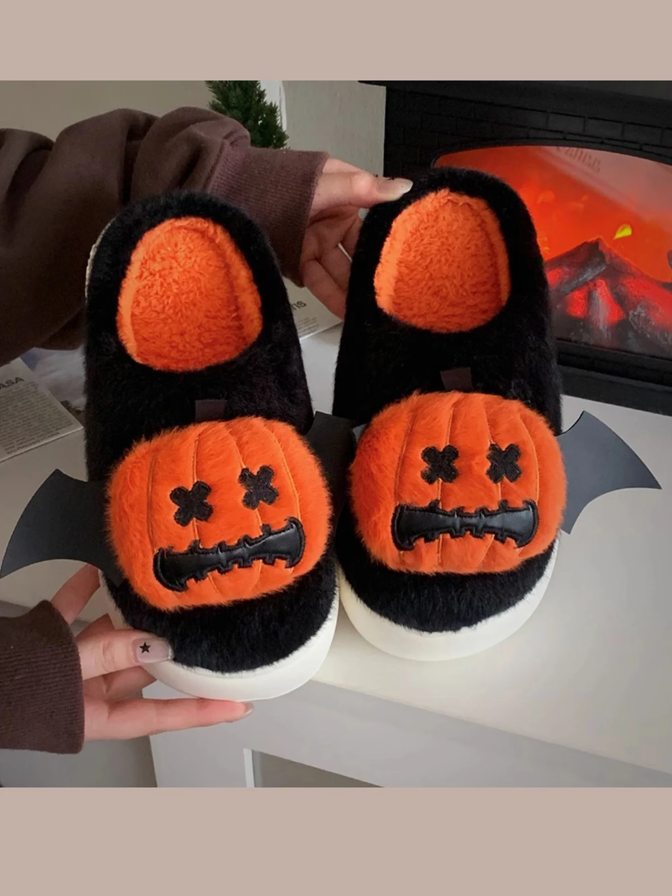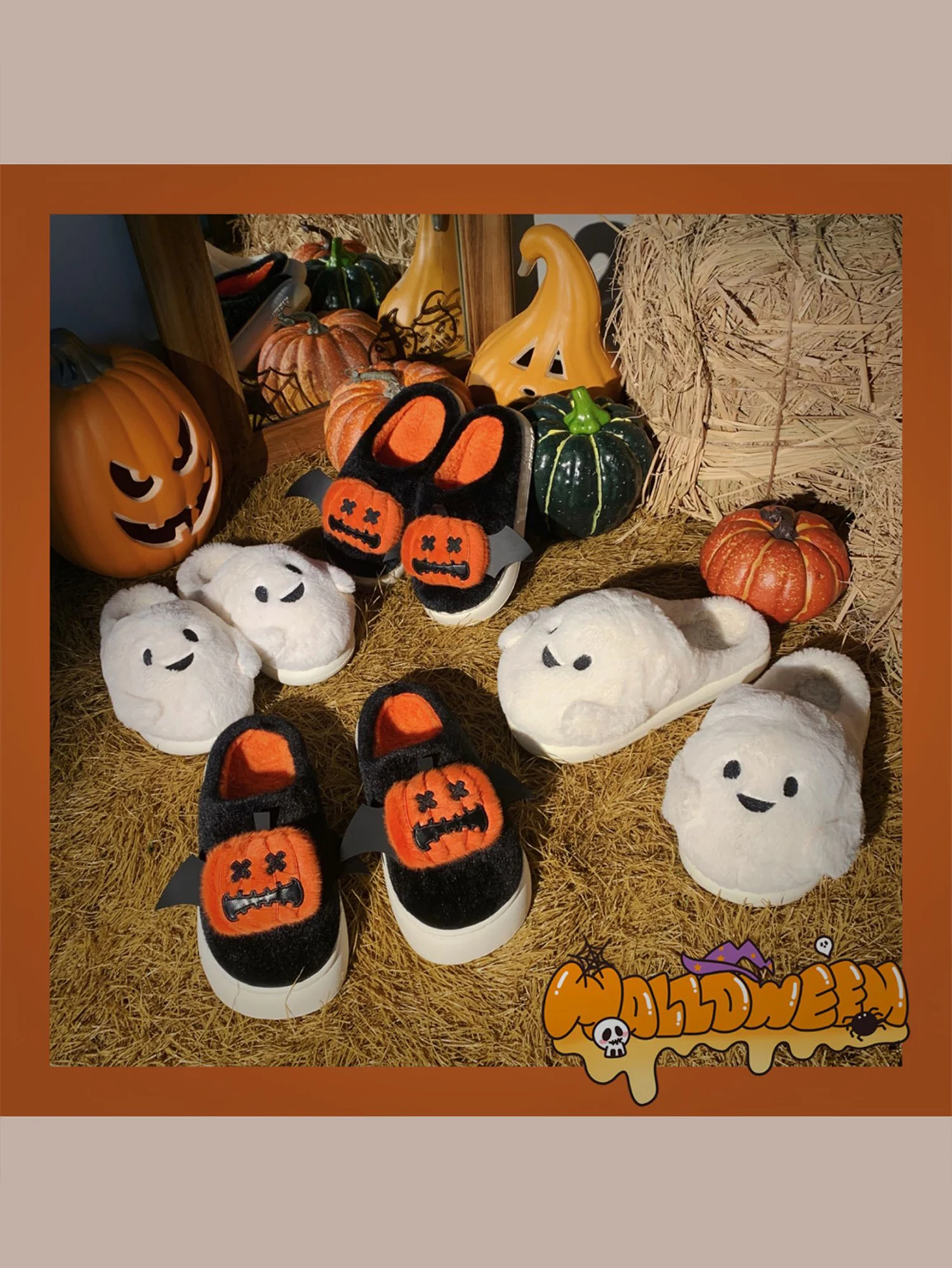 Halloween Ghost Pumpkin Bat Design Women Winter Slippers