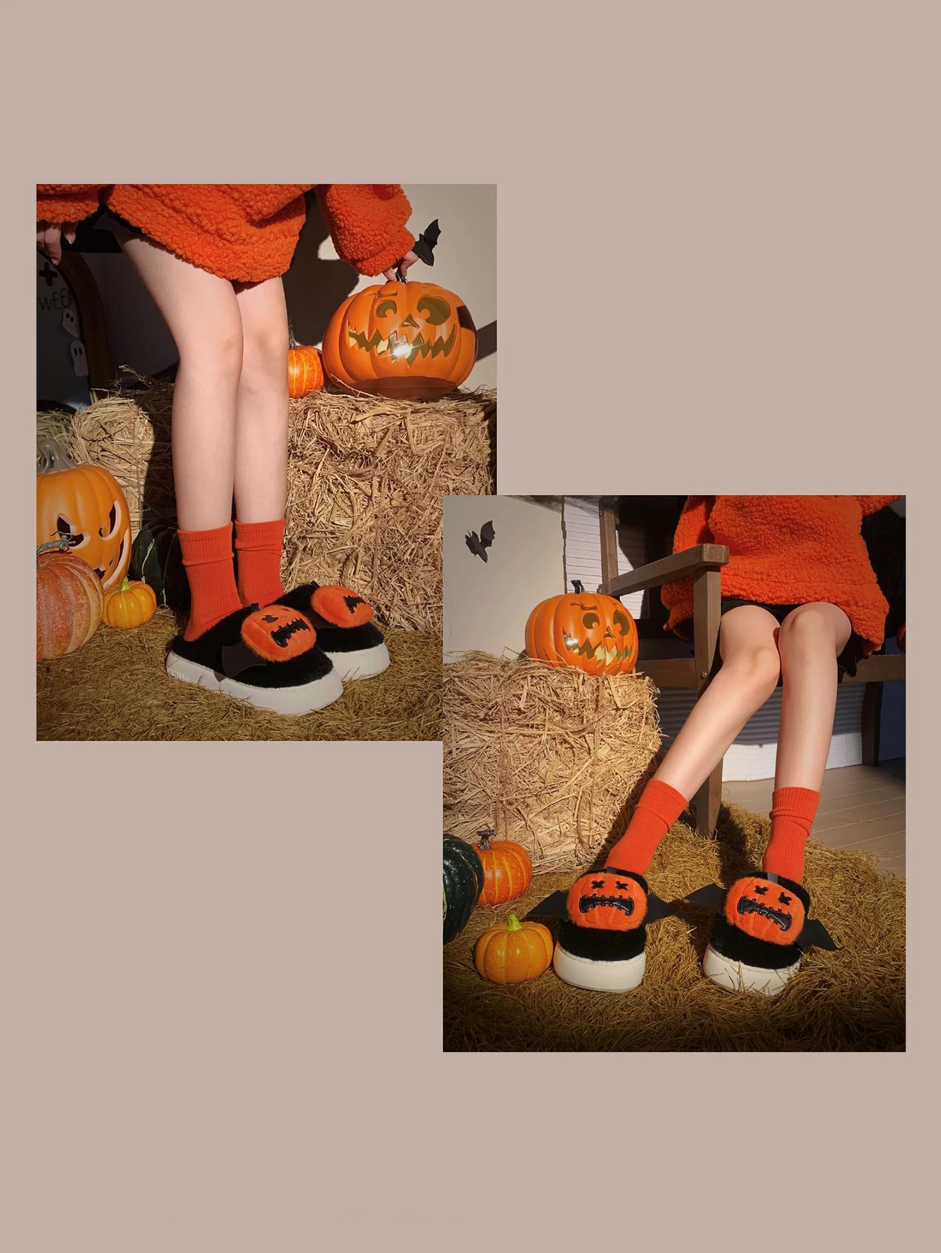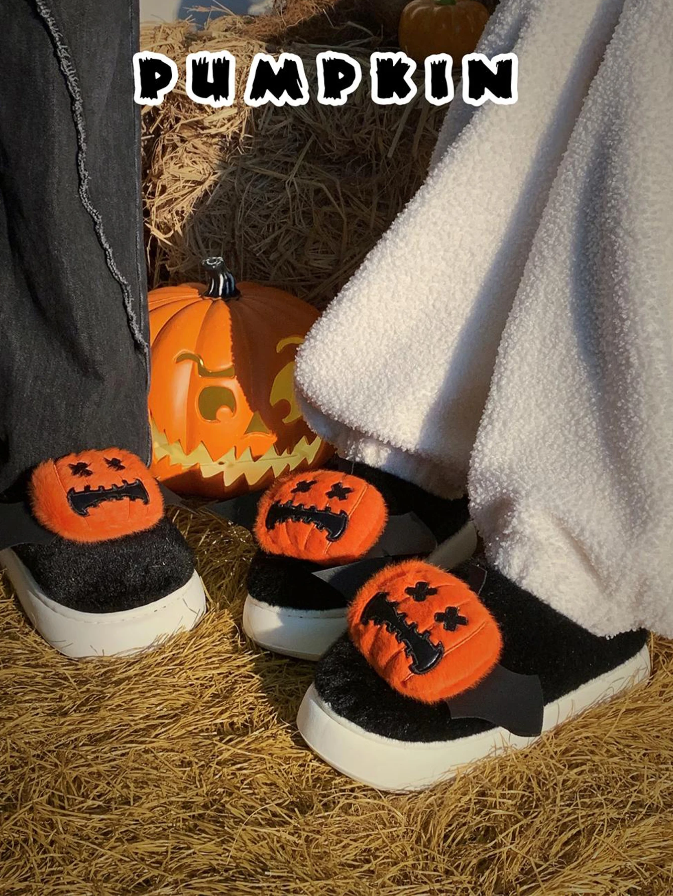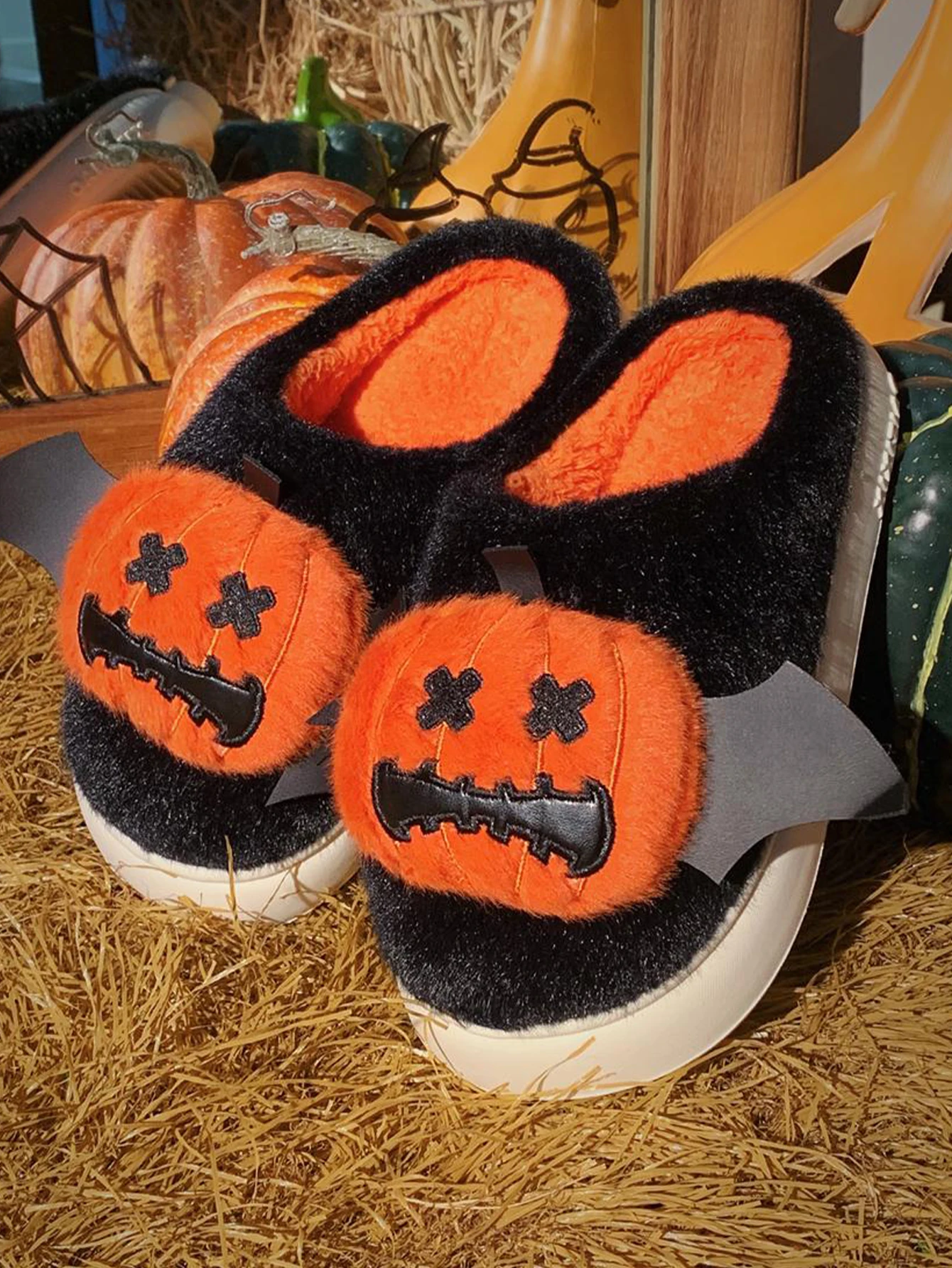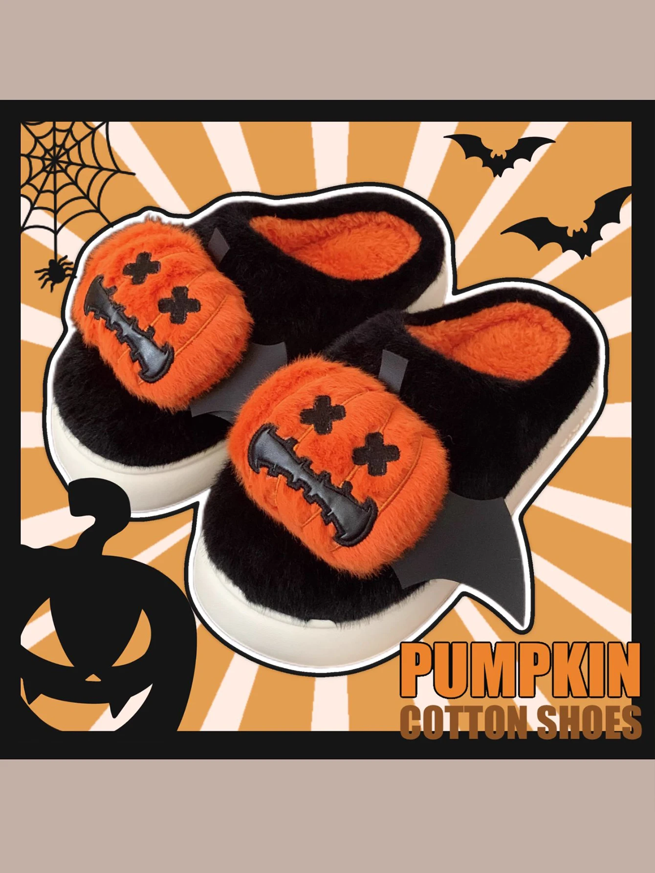 Halloween Ghost Pumpkin Bat Design Women Winter Slippers