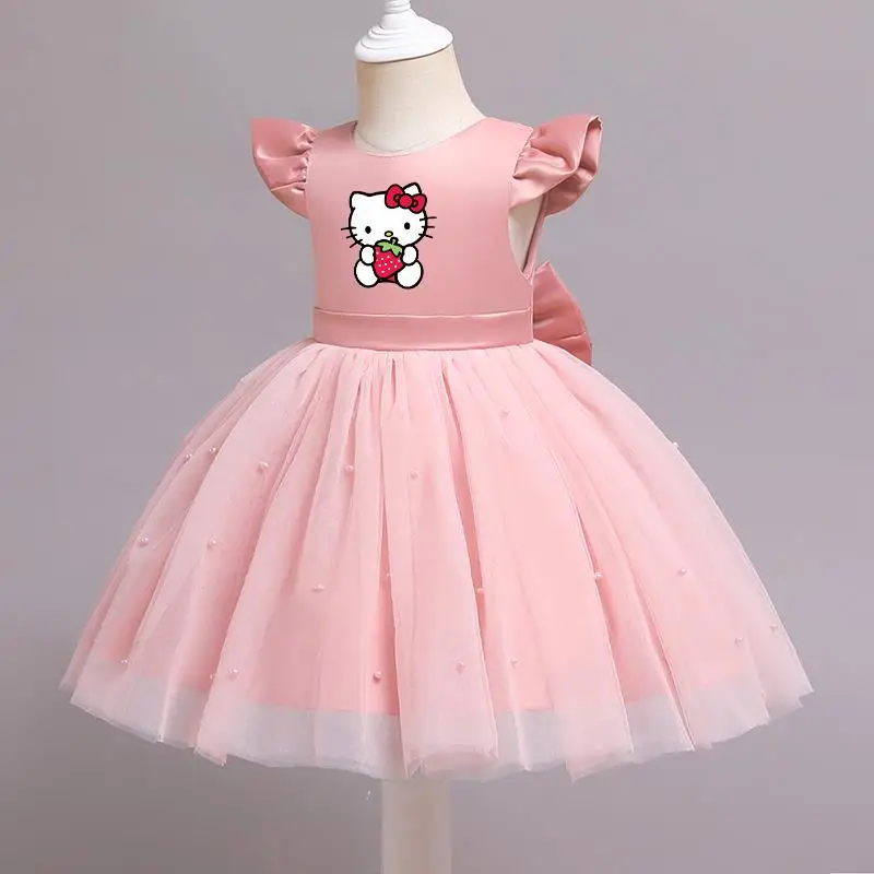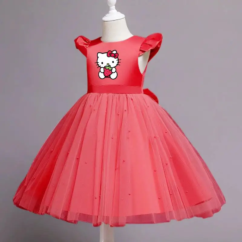 Hello Kitty Girls Lace Dresses Tulle Tutu Princess Dresses